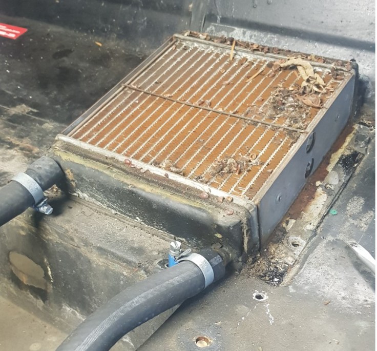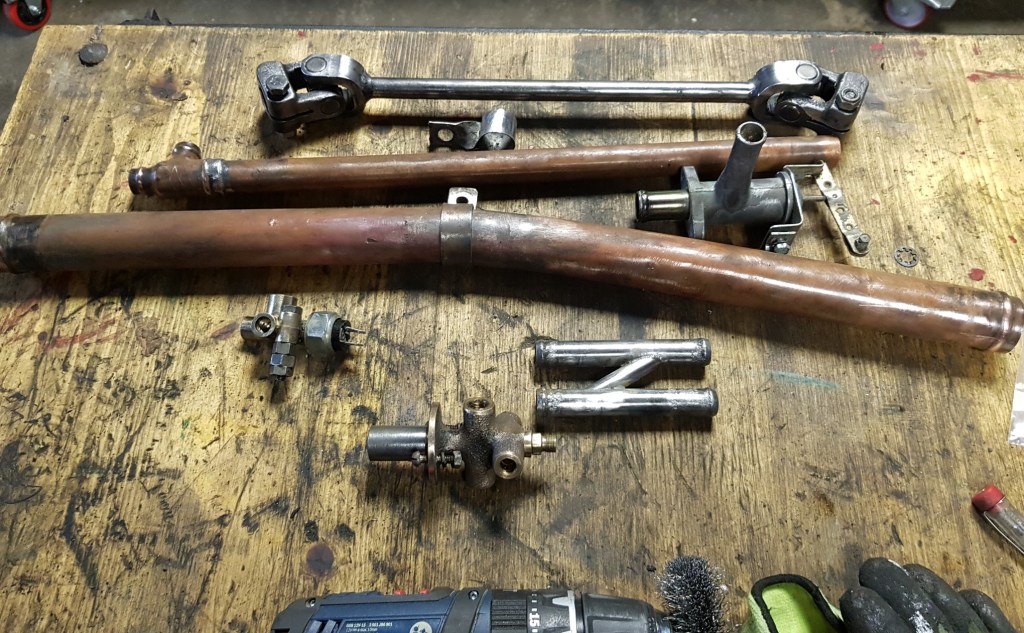 Finally, I cleaned up some more parts. I have everything ready to install the new radiator. Well not. The inner wings need to be fitted first, which I am not going to do before the master brake cylinder is in. The bulkhead should follow – but it is easier to fit the heater, throttle, and some insulation first. I found the small leak in that the heater had in the upper right corner (by submerging the unit in water). Simon from SiFab has an easy sale I would say – I hope to get his new heater matrix next week.
