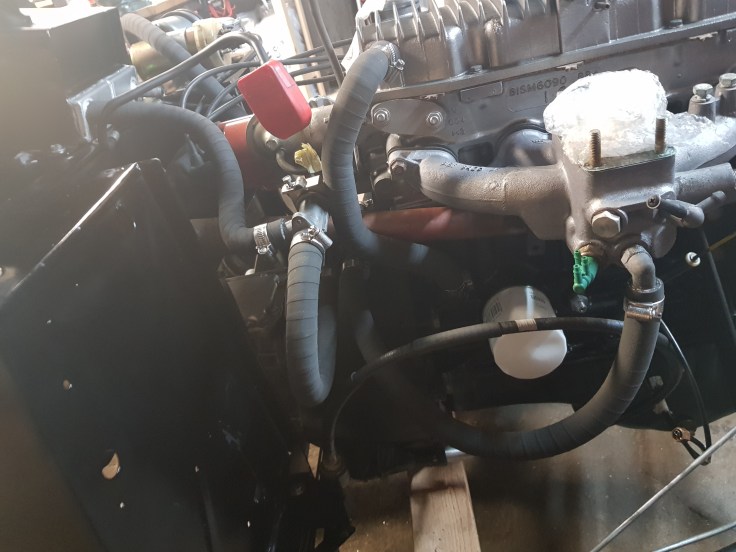 Although I test fitted the new heater matrix I got from Simon Hall (Sifab) before – I struggled getting the 4 bolts for the heater cover in. It is funny that sometimes easy tasks just chew away 20 minutes… Bolting down the ignition coil and washer motor just took a minute. After I added to hoses I decided that I will build a bracket for the heater valve. The new fuel regulator/filter came with the bracket and I attached it to the bulkhead where the old fuel pump used to be located. The upgraded Facet fuel pump will go into the back of the car – close to the fuel tank where it’s supposed to be. And I just decided that I will add an inertia switch as well.