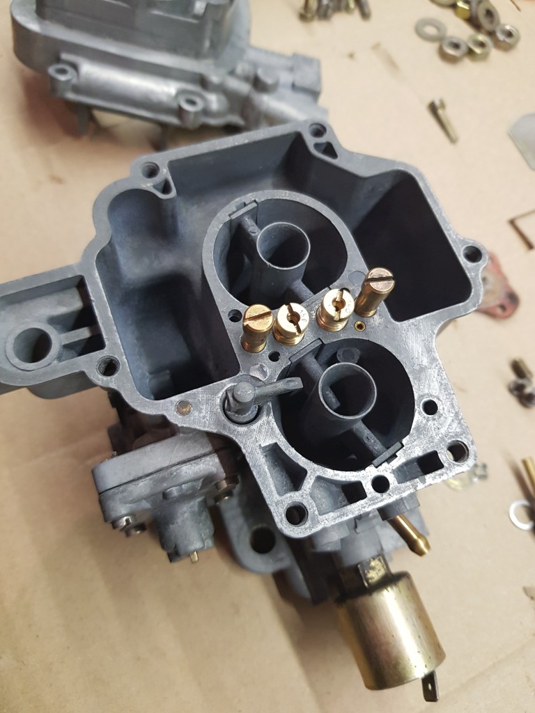 As I could not do much on the car in the garage, I did work on the Weber. The required spare parts from Webcon arrived last week and in between calls for work I reassembled the carburetor. While the new teflon bushes reduce the play of the primary and secondary throttle shaft – there is still a tiny bit of movement. This obviously could result in issues with the idle speed or worse. If bad comes to worse – I will replace it. Along with the Weber I also cleaned up the old dual HS SU4 from my MGB as well as a HIF6 I have as spare for the Mini. All of them have worn out throttle shafts – I guess it wouldn’t hurt to learn how to drill them out and ream in new bushes…