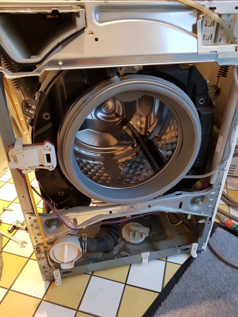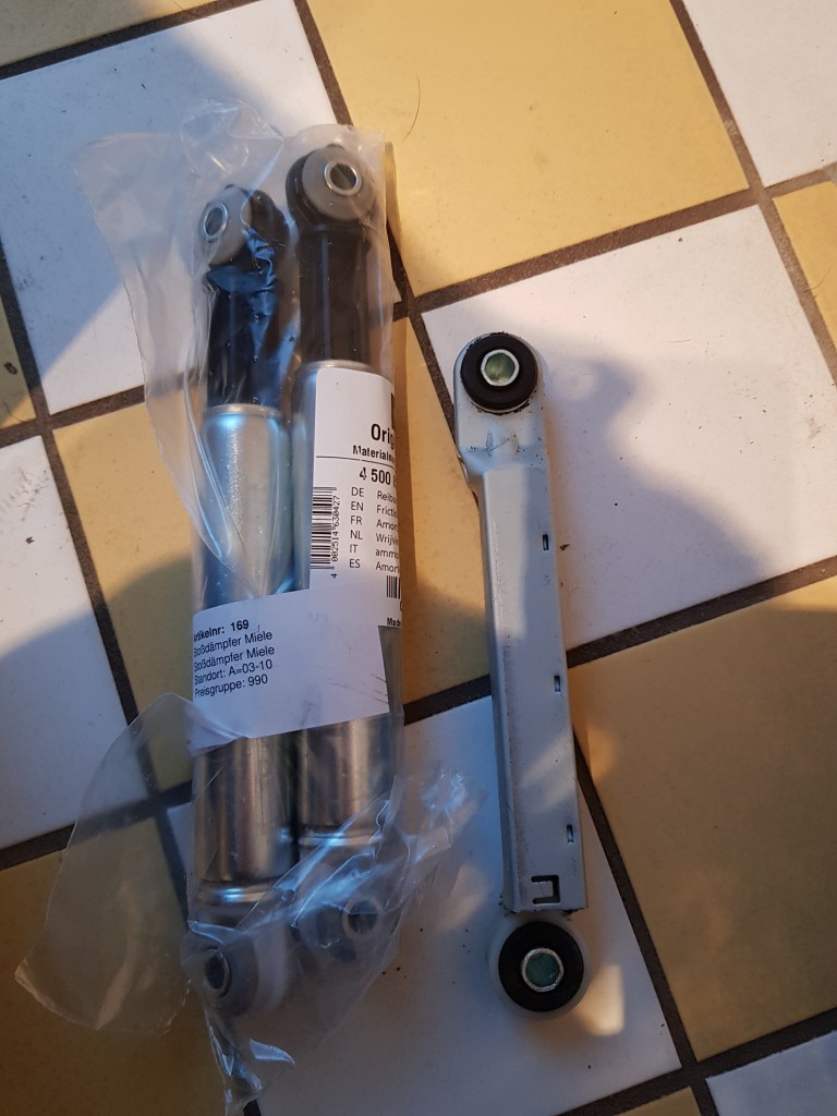 A quick and easy “side-task” came along last week. Did you know that a Miele washing machine has shock absorbers pretty much like on a car (just smaller)? After a couple years they wear out and cause really bad vibrations – as they only cost 60€ it is worth just swapping them out.