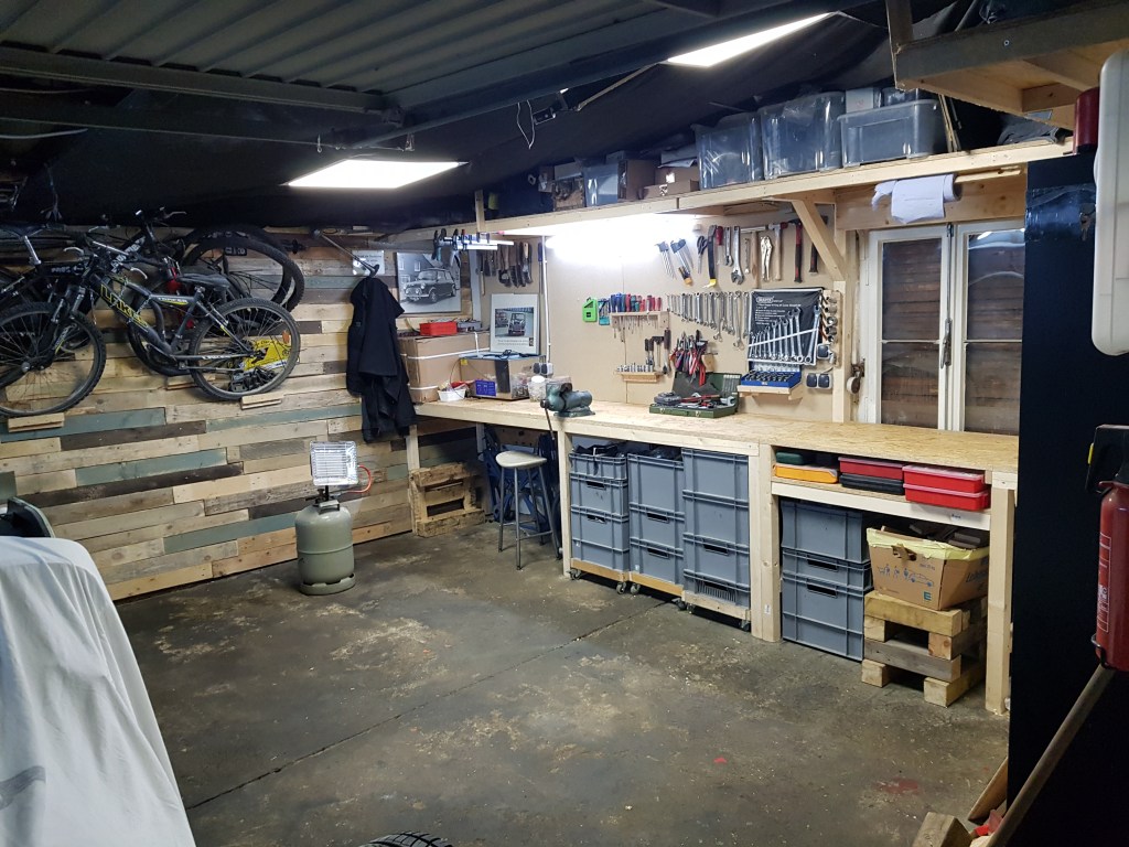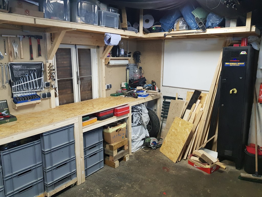 While I haven’t done much on the Morgan for the last two weeks – I still have been quite busy. As mentioned in my last post, stress at work, frustration about the lockdown and chaos in the garage resulted in a bad mood. There is nothing I can do about work and Covid-19 – so it is important focus on the things I can change. Just before all stores closed, I bought some wood to build a new workbench and some shelves.