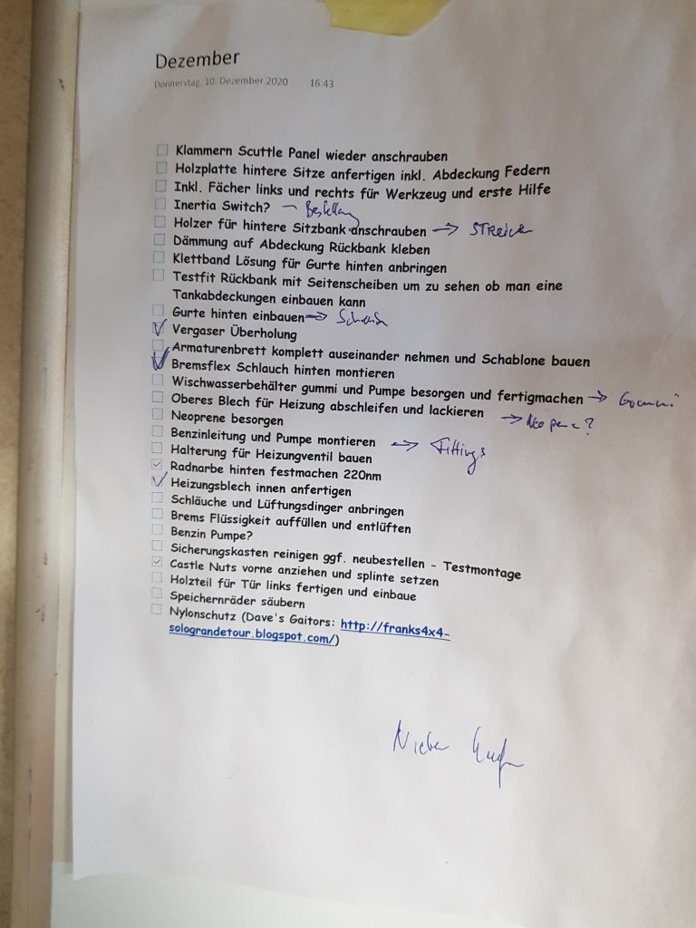 Talking of delivery problems: Autosparks shipped the new wiring loom just before christmas – but even though I called them multiple times, sent emails and had the correct address updated in my order on their website – they still managed to ship to JB Engineering instead. (The original plan was to pick it up with the rear axle….) Billy Bellinger was so kind to immediately send it on to me – but the travel restrictions kicked in on the day the packaged arrived at Heathrow where it is stuck now.