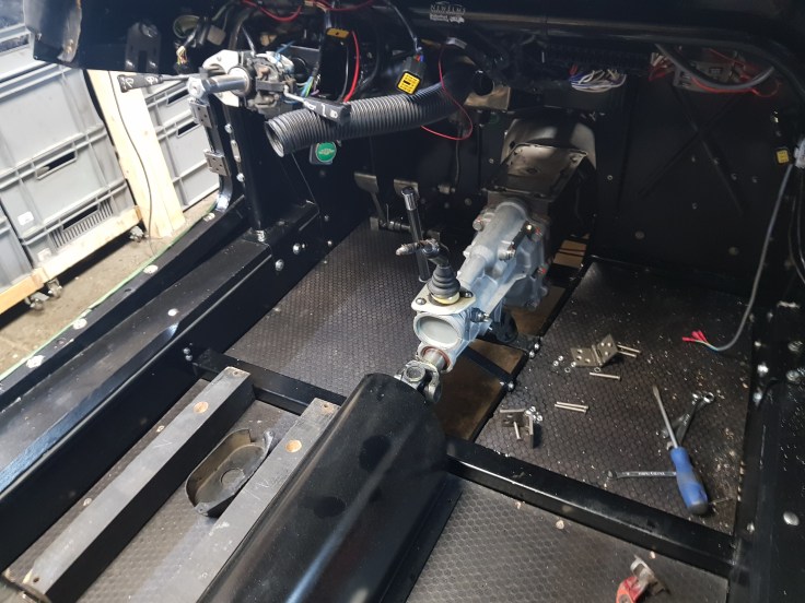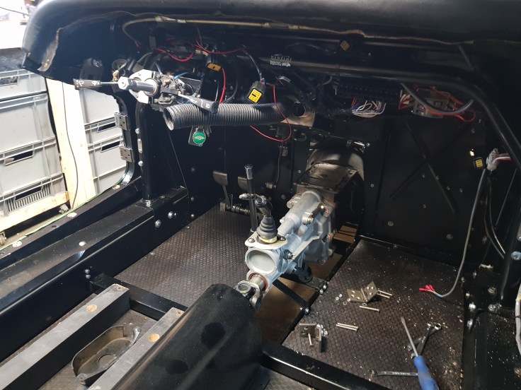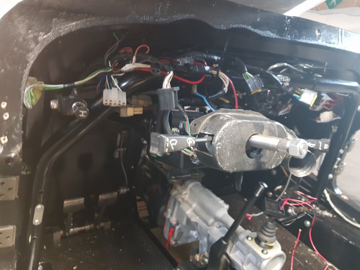 With the EZ powersteering now in and wired up it was time to find a new home for the heater cable and knob. I used to be attached to the right of the steering column but this space is now occupied by the servo. As this is certainly not the most used control/item in the Morgan I decided to move it to the very left and behind the dashboard. With a little bit of heat and some persuading strokes with a hamme the bracket that was supplied with the new steering was modified. The control knob for the power steering found its place left of it.