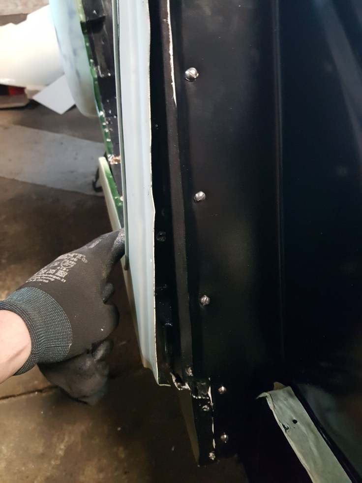 With all of this done it was time to finally install the scuttle panel back on the frame. As I did a couple of test fits while I was replacing the wood a couple month back I expected this to be a smooth and easy job. But after 3 hours of trying to get it back on I gave up for today. The right side (no wood was changed there) used to easily slide on. Maybe it is simply the cold temperature in the garage? Even with the gas burner it was just 6 degrees C° in the garage today. Before I mess this up I need to get help…