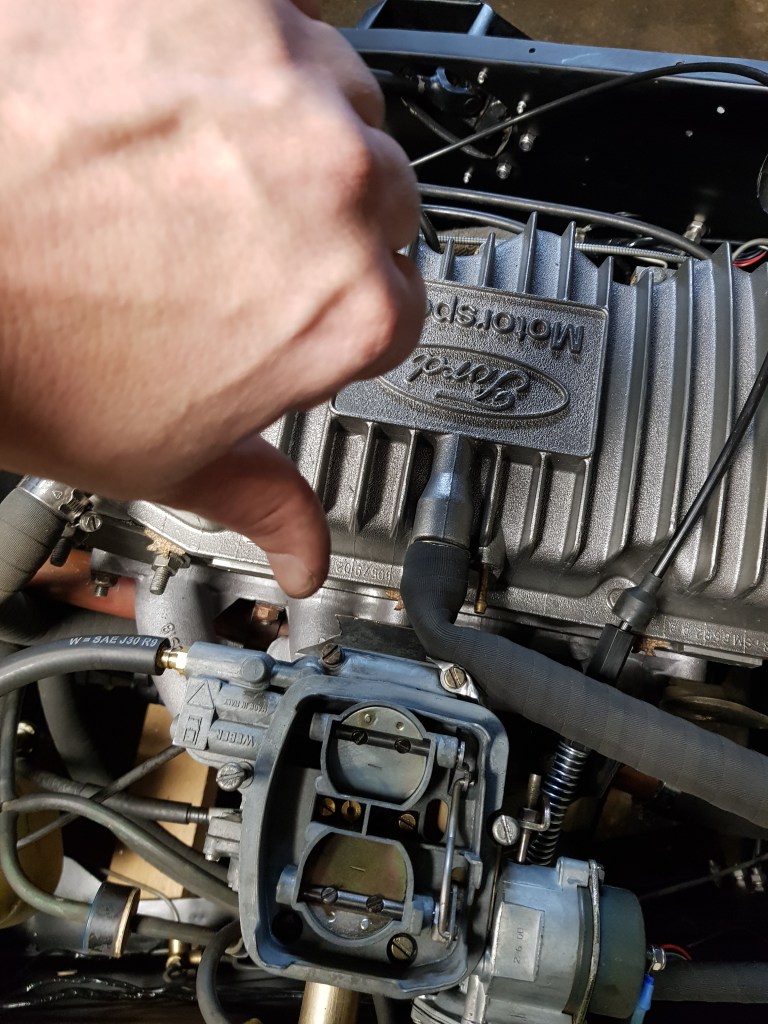 the PCV hose connector on the Ford Motorsport valvecover is too close to the carb. I need to find a 90 degree pipe angle to make this fit better