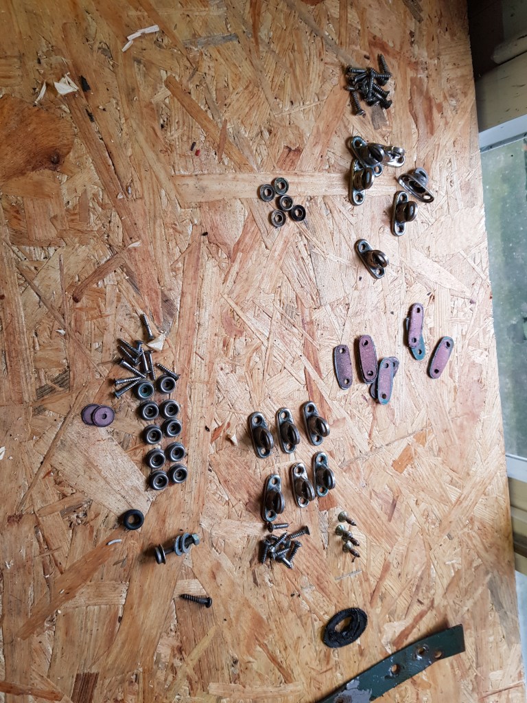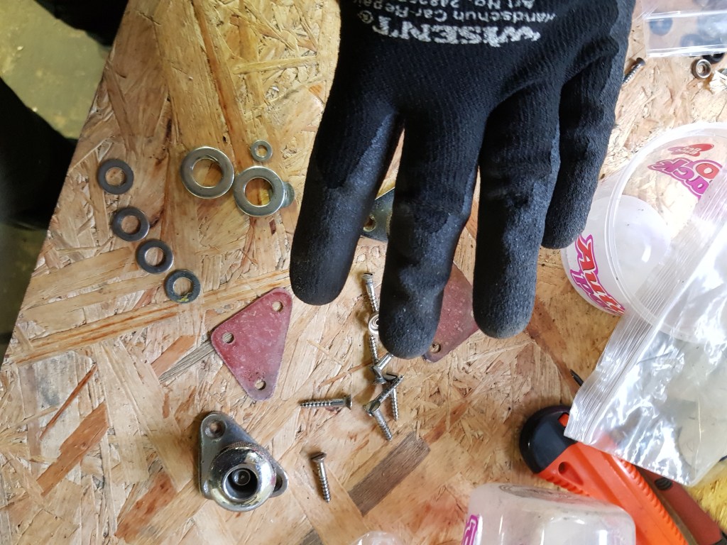 Next on my list was to refit a grommet for the rear brake line where it enters the chassis. While in theory an easy task – I had a hard time with this. I started searching for a smaller grommet and ended up cleaning and sorting all remaining parts that need to be installed. After more than two hours I now hopefully have a final list for my next order at Mogparts.net and only 3 storage crates left with parts that need to go back on. An old smaller grommet was found, and all fuel line screws double checked.