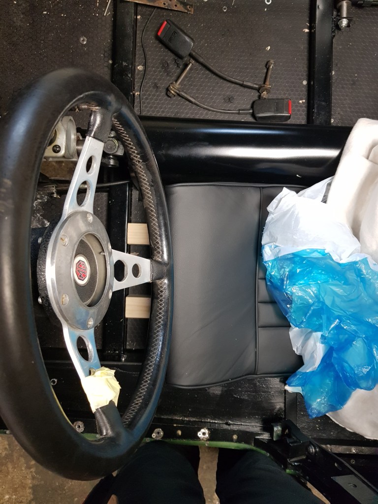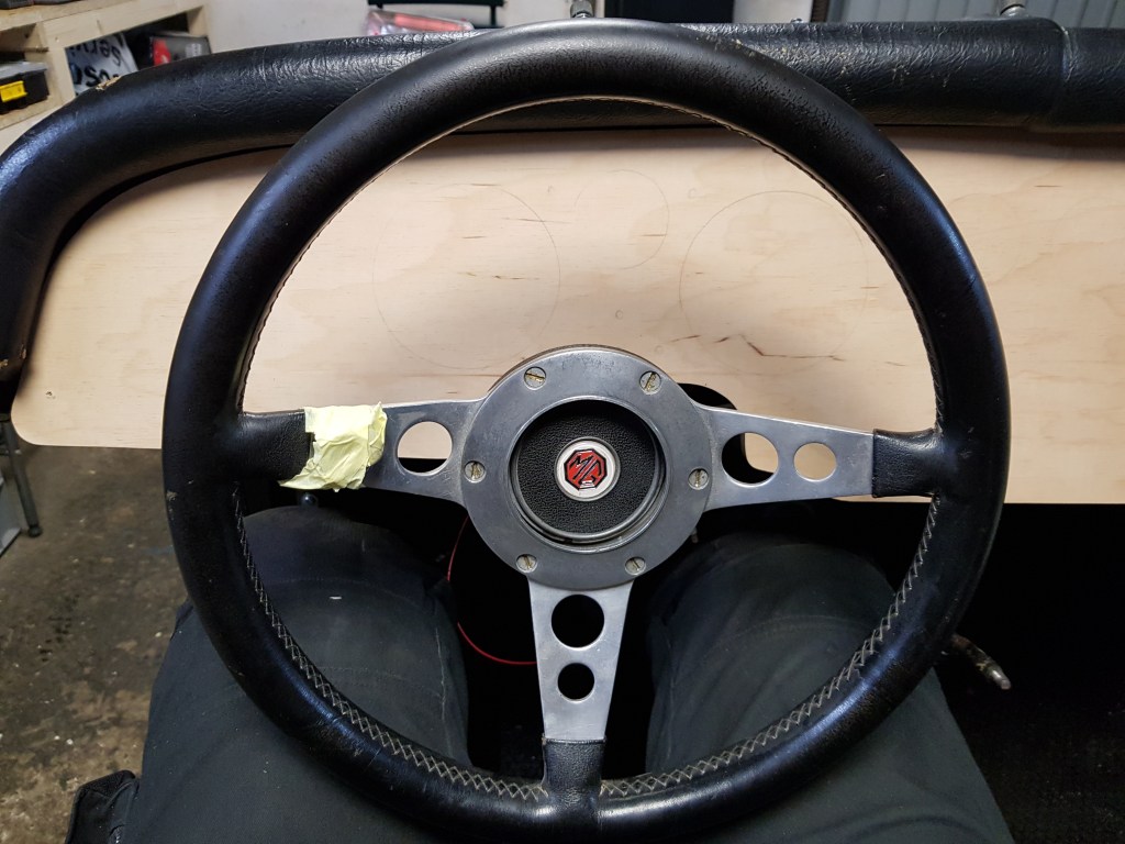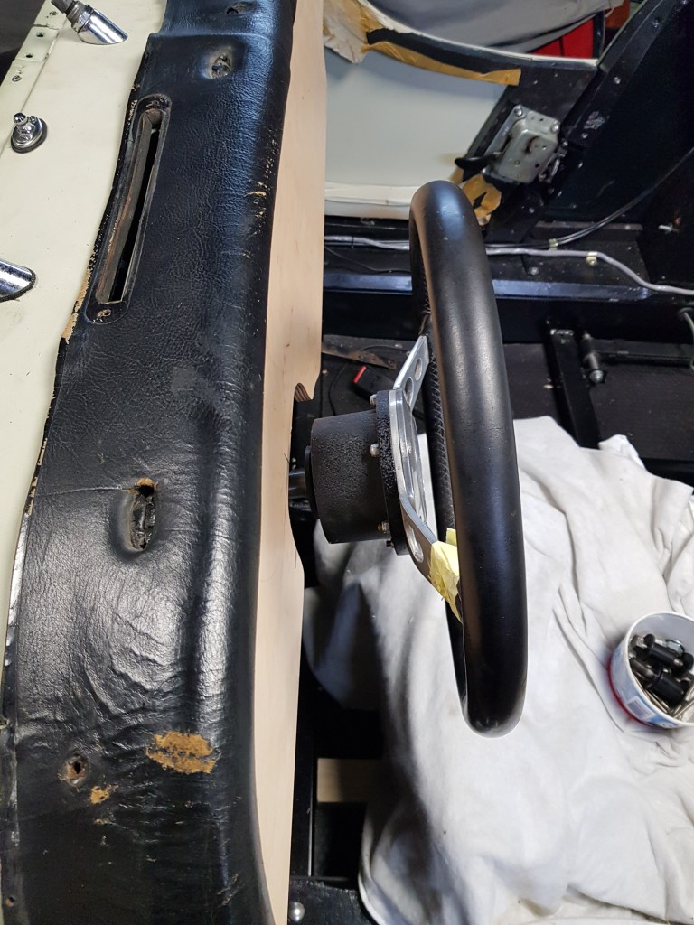 Frustrated about this I decided to take a seat. At this point I noticed the odd position of the steering wheel again. Now I wrote about this before back in November. Now with the seat in the final position it really bothers me. Building the new dashboard is on the task list for this week and if I want to center the steering wheel, I had to do it right away. The downside of this change are two unnecessary, ugly holes in the bulkhead. I really hoped that now further welding would be necessary…