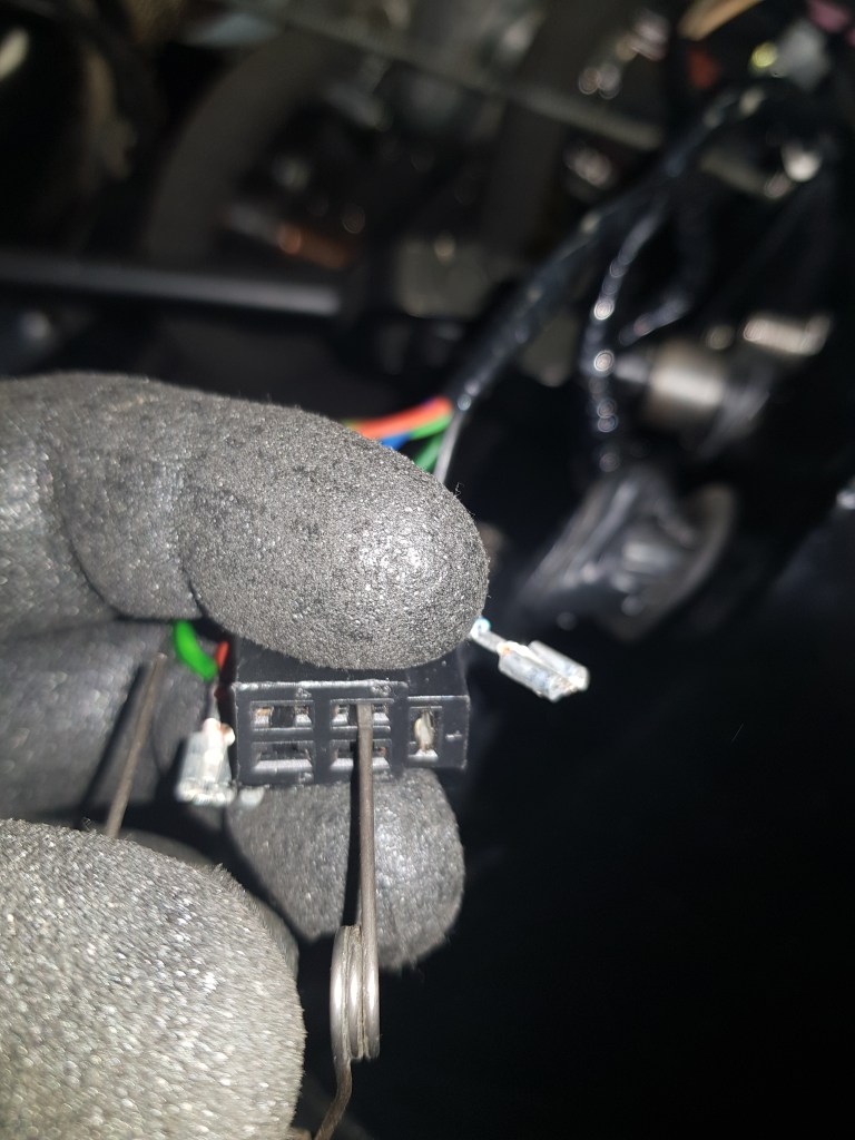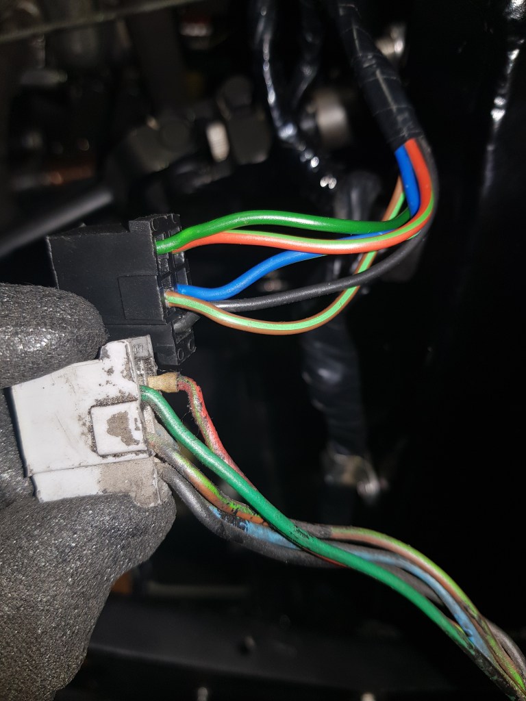Getting the cables out of the connector without destroying them is fiddly. I ended up flatting a pieces for thin metal with the hammer that just fits beneath the connector. You then twist this 90degrees which will lift up the metal hook on the Lucar-style plug insight. Afterwards you need to carefully bend this down again and insert the cables in the right order. (see pictures).