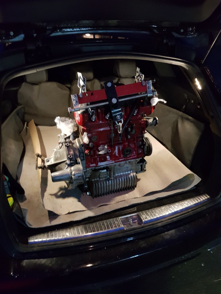Looks shacky – but the engine is tightly strapped to anchor points on the back seats. I cannot move