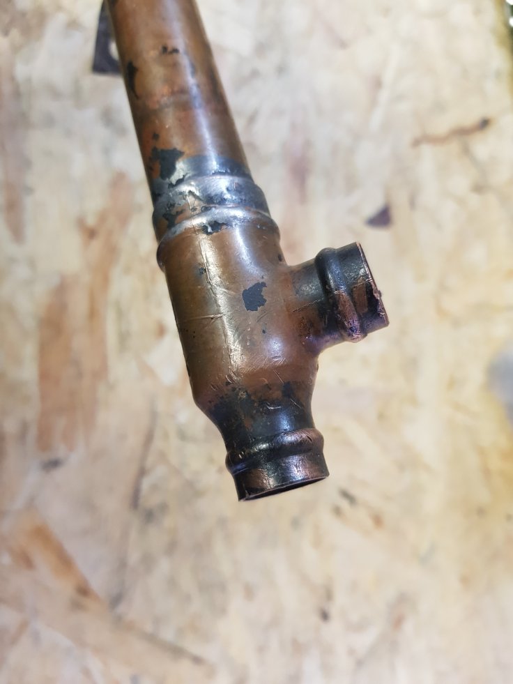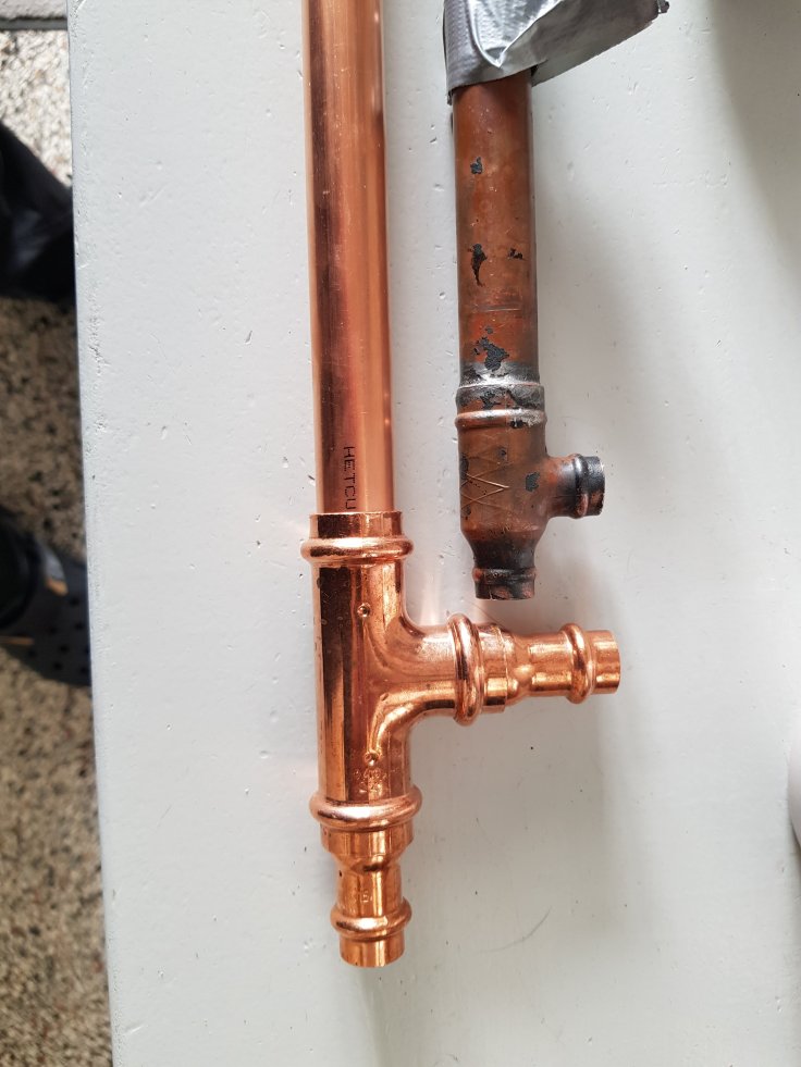 old vs. new cooper pipe and T-connector