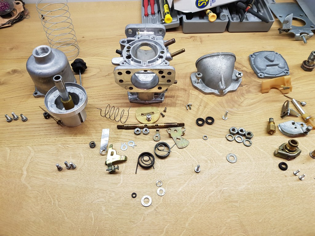 If somebody would have told me that I might enjoy rebuilding carburetors a while I ago – I would have laughed out loud. Now however, I must admit that there is something oddly satisfying about it. As I can pick up the Mini Cooper engine with the overhauled gearbox this week, it was time to clean the carb. Miffi (the Mini) is 29 years old and has just under 100000km on the clock. Using some brake cleaner on the SU made a big difference already and I could (maybe I should) have left it at this point.