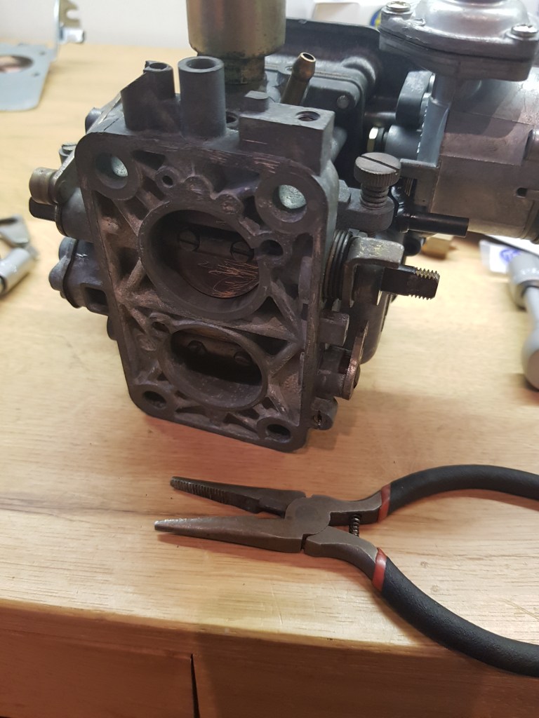 By now I don’t even blink anymore when it comes to taking the carburetor off the car. I remember that when I started working on the MG two years back – I was really concerned to work on the (back then) dual HS4 – because, you know: Never touch a running system. These days are gone – I am still by no means an expert, but I do have a much better understanding of the fuel and ignition system nowadays. While doing a very short test drive again, the engine ran rough and backfired a couple of times. Assuming that the ignition timing is correct (as the car just got back from a technical inspection at a garage) I double checked the Weber another time.