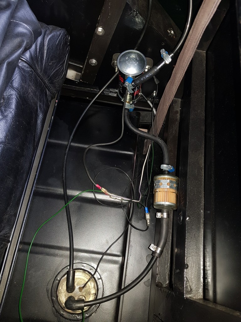 As I thought to have done the Weber setup correctly – I decided to remove the Facet fuel pump and pressure regulator I added during my restoration. The idea was to remove potential problems I added. The old pump was working before I started a year ago. Fortunately, changing the filter and pump was very easy. A good proof for the serviceability of my setup in case something breaks in the future. I checked that the pump delivers fuel – but the car still would not start.