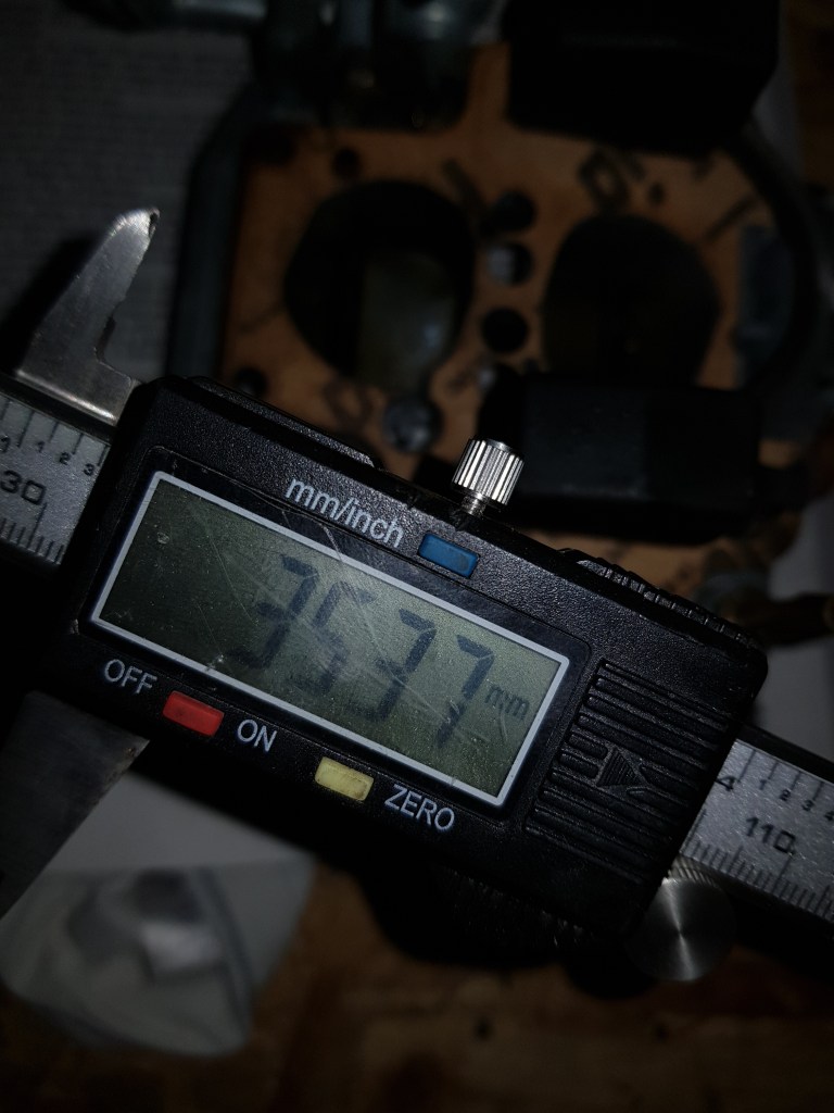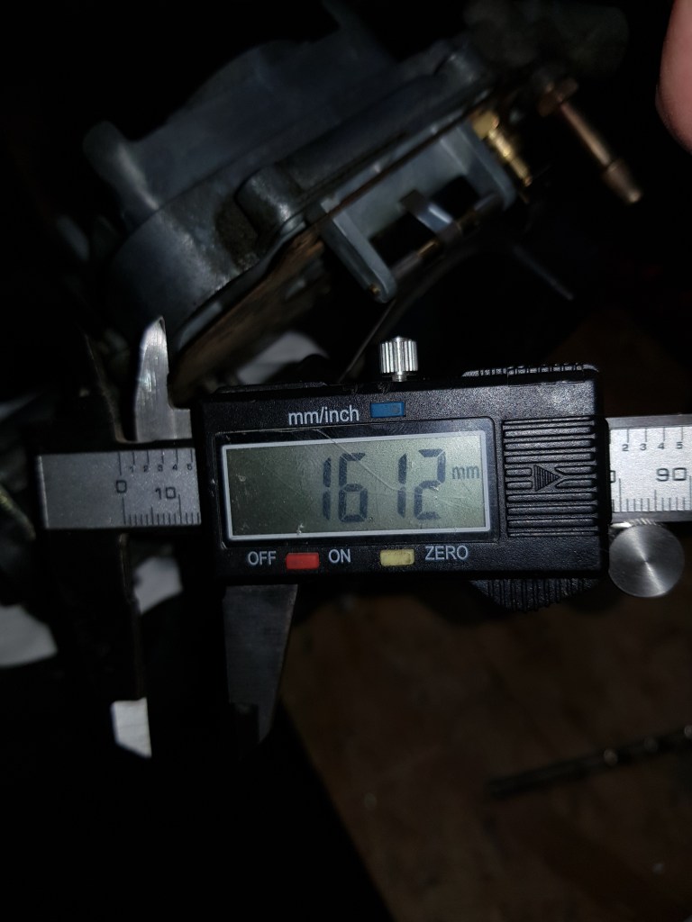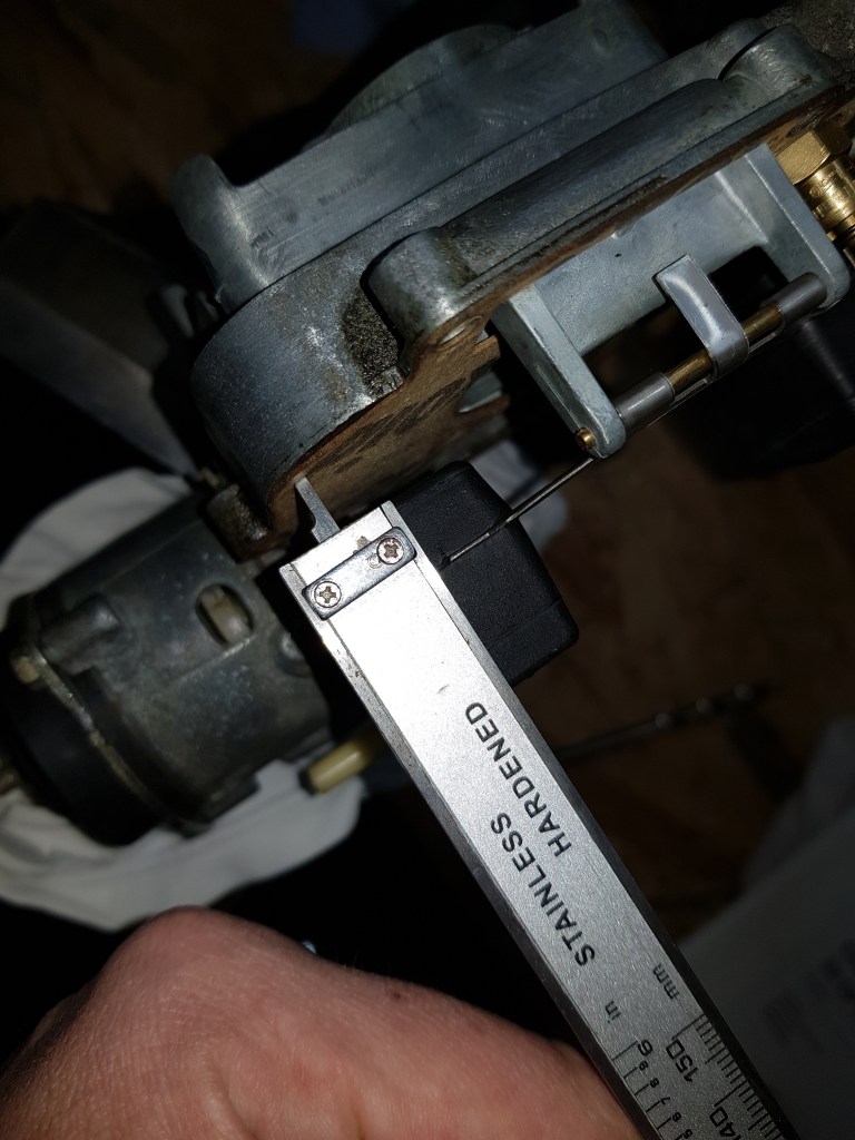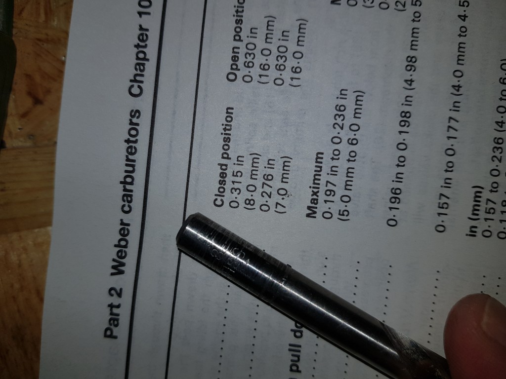 Therefore, the only thing left was the Weber. The two Youtube channels above helped me a lot. And the only option I had left was to check it again. Using the Haynes Techbook I followed the instructions precisely another time – but this time I used a drill (just a they write) instead of a caliper to measure the float height. And for the close position the problem was clear right away – even though the caliper seemed to show 8mm – the drill bit would clearly not fit. This was the point that I noticed I ran into a stupid parallax error. I looked at the caliper from the wrong angle…
