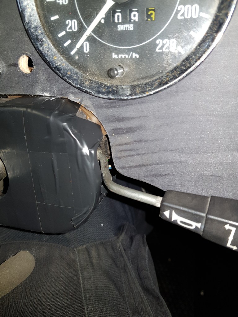 Difficult to see – but I mount the indicator (right stalk) so that the plastic notch is in front of the colum. This moves the stalk approx 5mm closer to steering wheel…