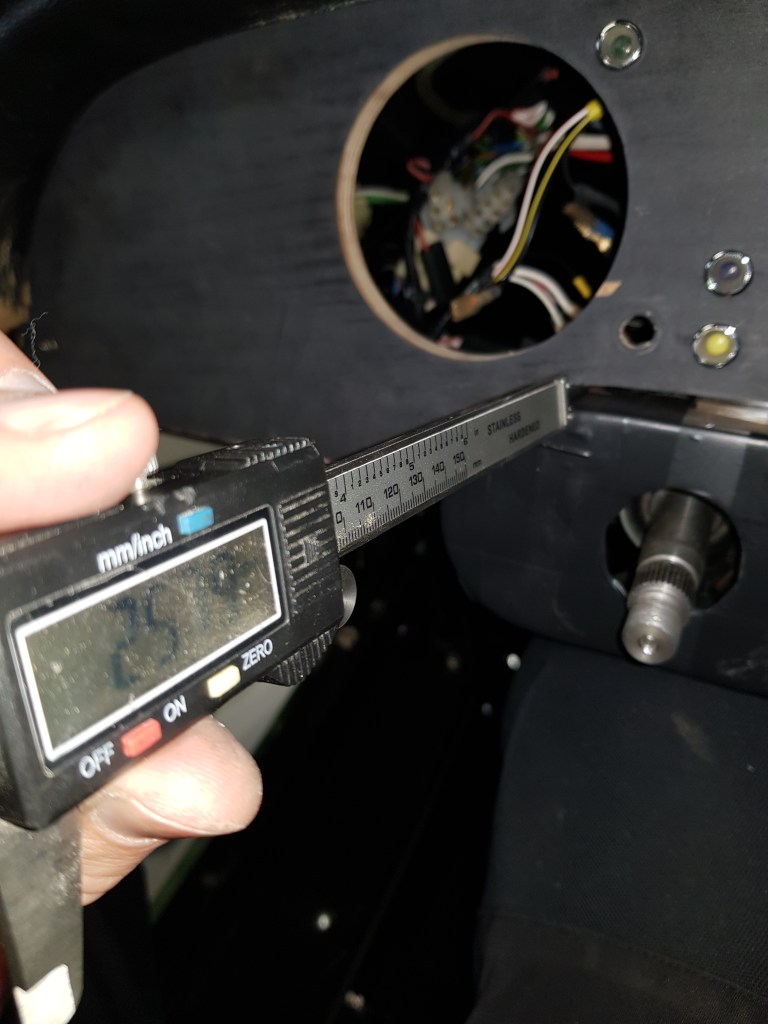 with the steering wheel in place the cover can only stick out 15mm – I need to create shims on the back of the new dashboard to compensate for this