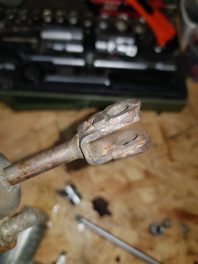 The components in the pedal box are a different subject, however. I am really glad that I took this apart. The bushes and bolt for the pedal have too much play – but there is a replacement available – even for the bronze bushes that are pushed into the pedals. The hole for the clevis pin in the clutch pedal on the other side is completely worn. This also killed the pushrod on the new clutch master cylinder that was installed by Frontline Developments about two years ago. If I am not mistaking – getting new pedals is impossible. So, I need to figure out a way to fix the oval hole in the clutch pedal. This will be tricky. The pedal box assembly itself has some rusty areas but is in good shape overall. I am sure it will look ace after blasting and powder coating.