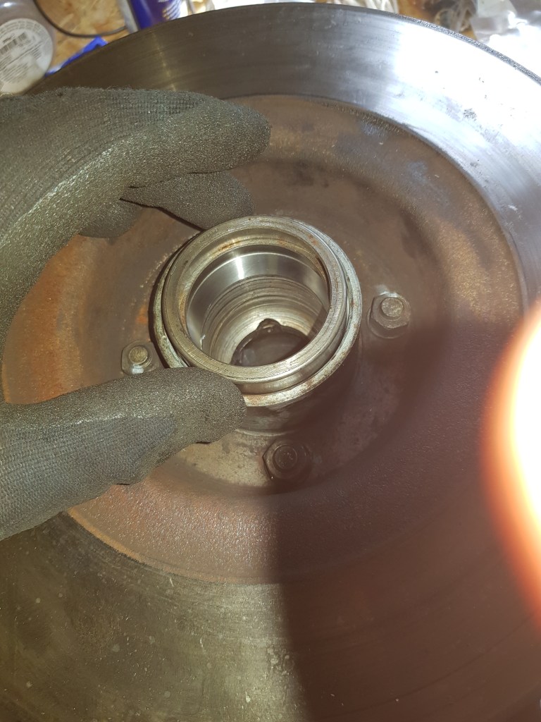 The last reason why there is little progress, is that there are also some things “up in the air” at work for me since last Friday. This came completely unexpected. It has the effect that I have too many other things on my mind. Spending time in the garage is not one of them. Well, at least on Sunday I managed to change the bearing races and set the end-float on the front axles of the MGB. A number of websites and videos said that the shims required are usually 0.56 thousands-of-an-inch. This turned out to be spot on for my car as well.