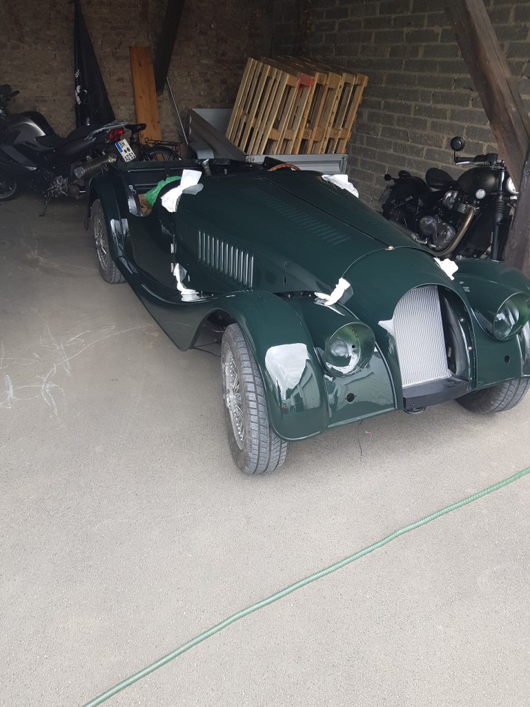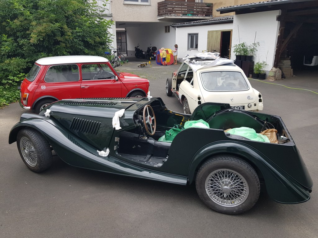 It was an unexpected yet very welcome surprise when I got the call yesterday noon. The paint-shop finished the Morgan earlier and told me that they would drop it off later the day. This caused me to panic a little as the garage was a complete mess. As I had nothing better to do that last couple evenings, I almost completely stripped Mildred (the new MGB GT). While most of the smaller items I took off have been cleaned, packaged up and documented – the panels, engine, gearbox and many other things were taking most of the garage space.