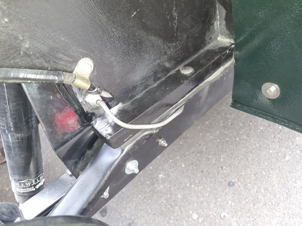 unconventional and maybe a bit crazy… I moved the location to the Rutherford bracket for the rear brake line