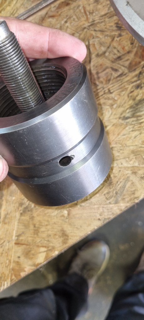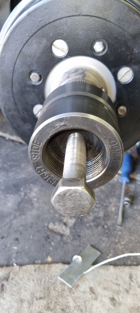 This tool is required to pull the wire wheel hub… Thanks to André for letting me use it during his vacation