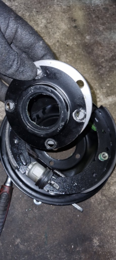 With the hub out of the way the brake anker plate can be removed.