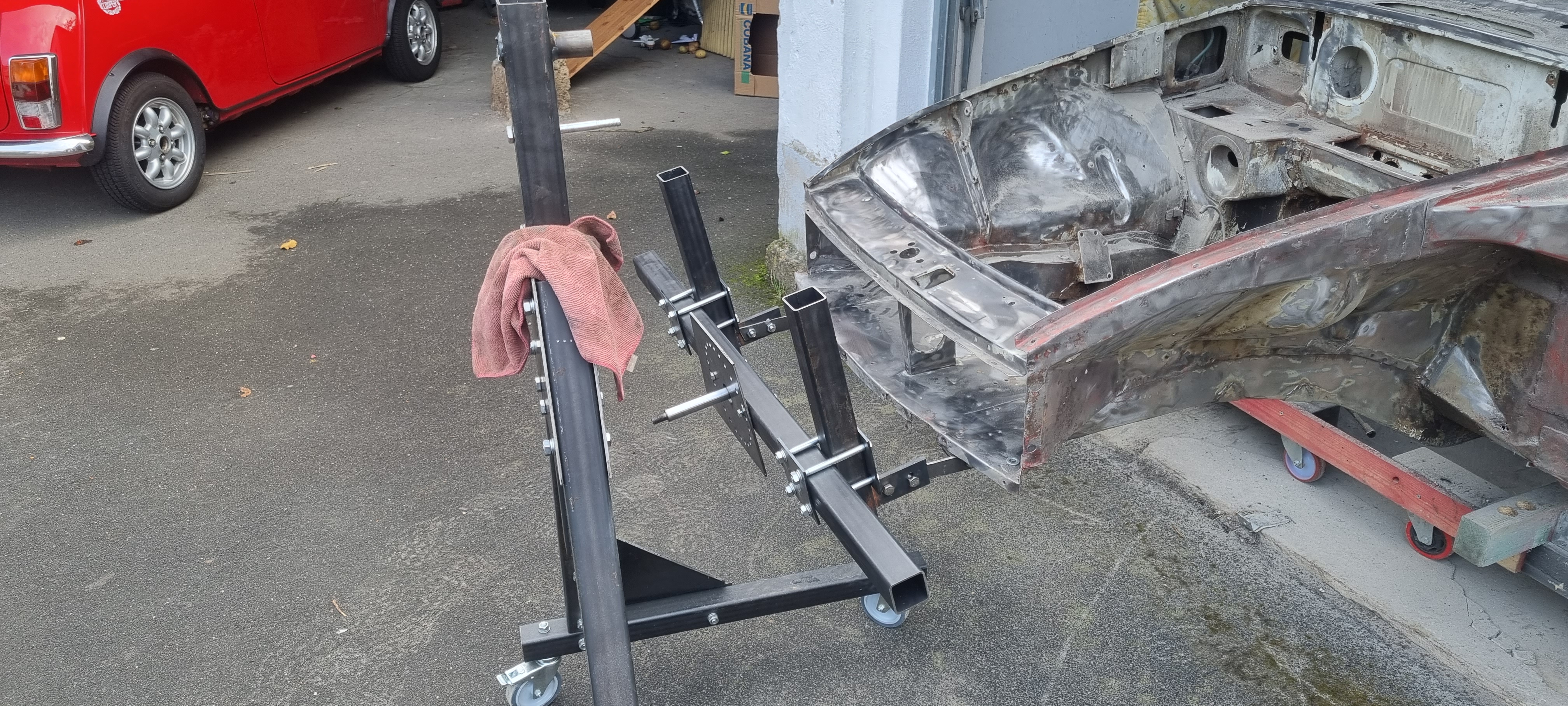 Frankly, I stole the design of the jig by looking at many different one’s I found via a web search. I wanted something that I could easily take apart later for storage or transport. While I assume that I will use it to mainly work on Mini’s, MGBs and Midgets – who knows, maybe an E-type will come along someday. All of this seems to be possible with the Type 2 mobile jig from ADE Foreman Light Engineering