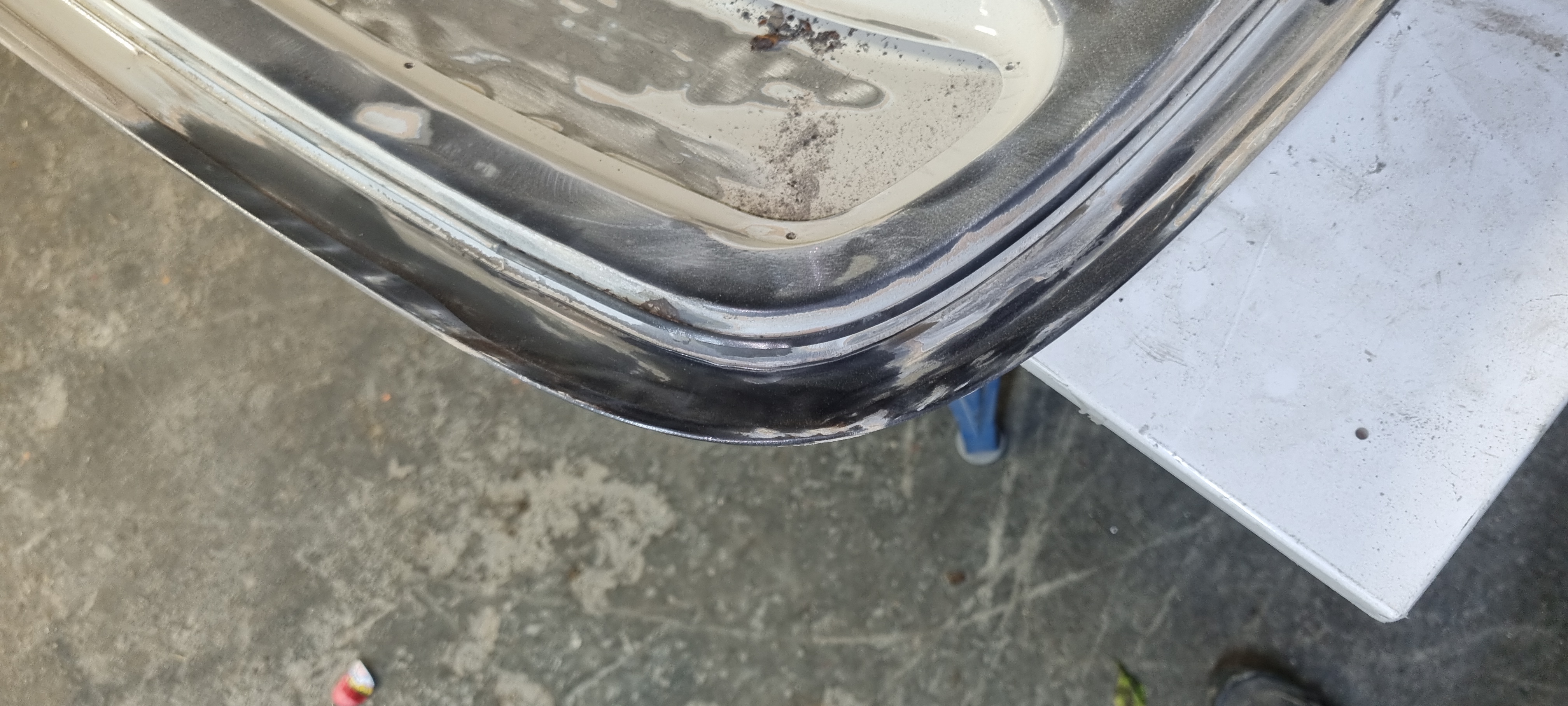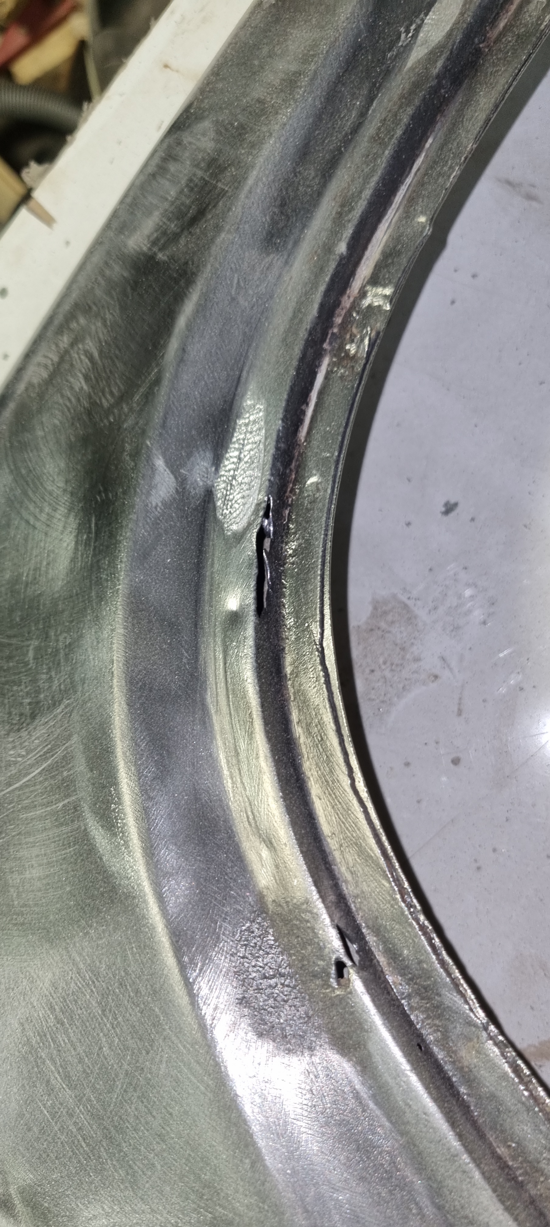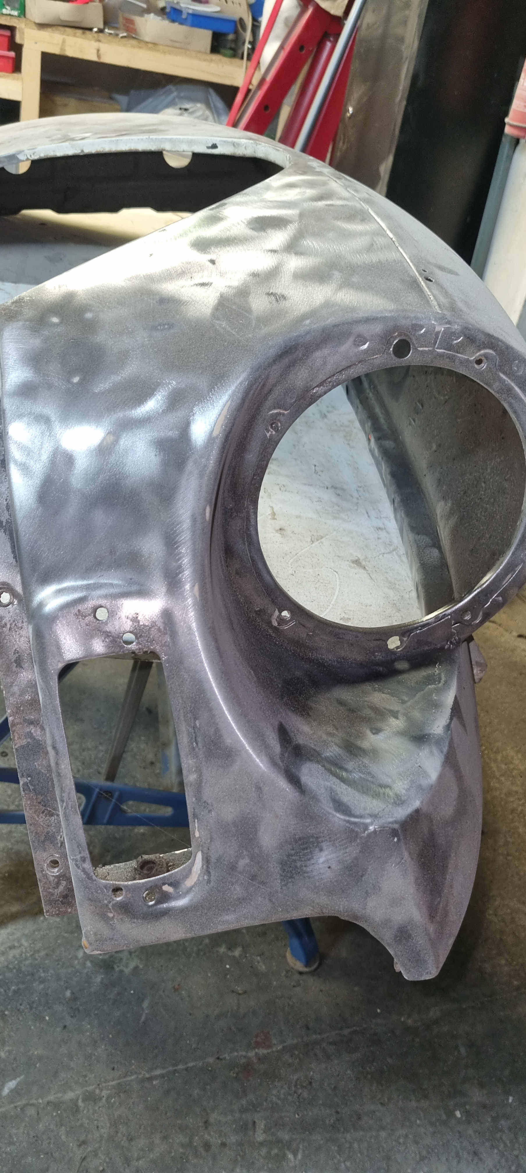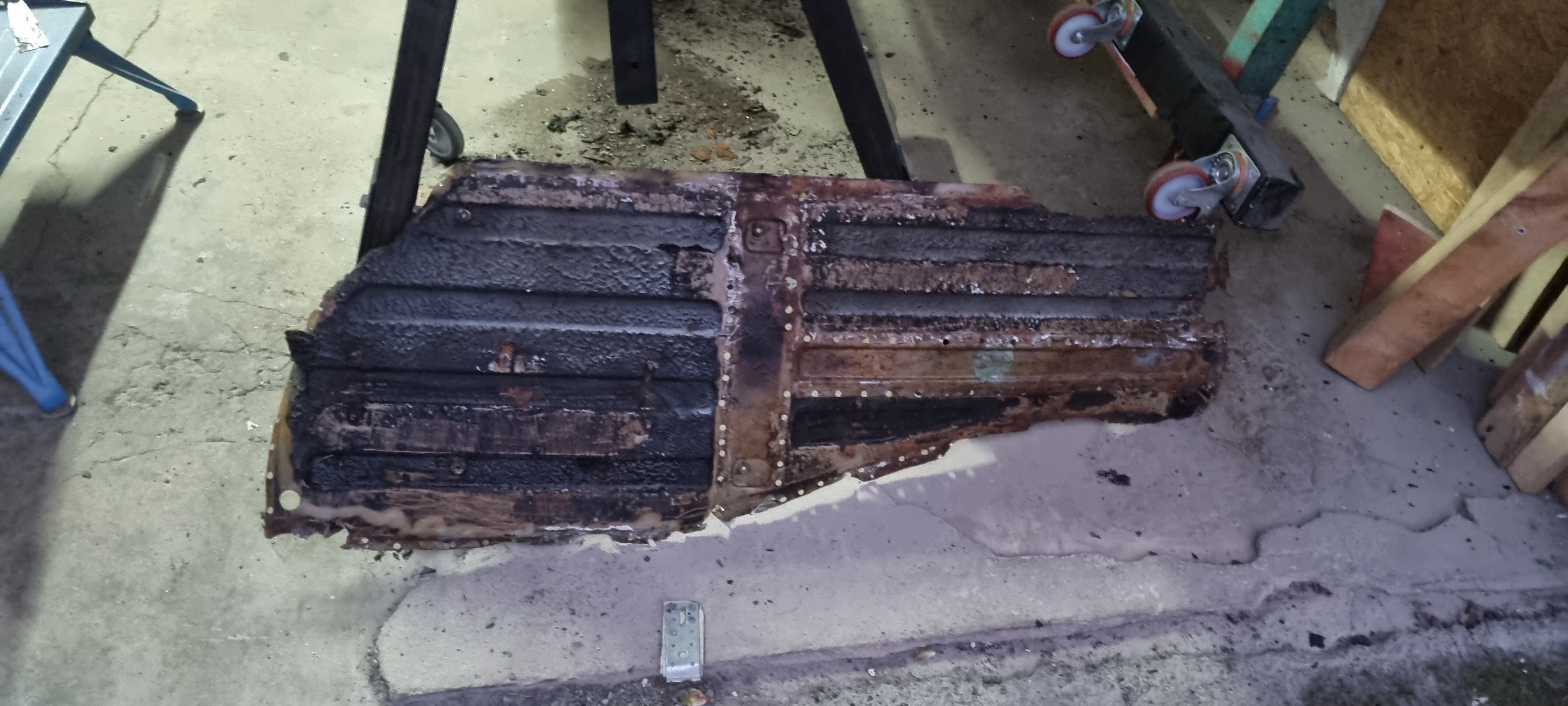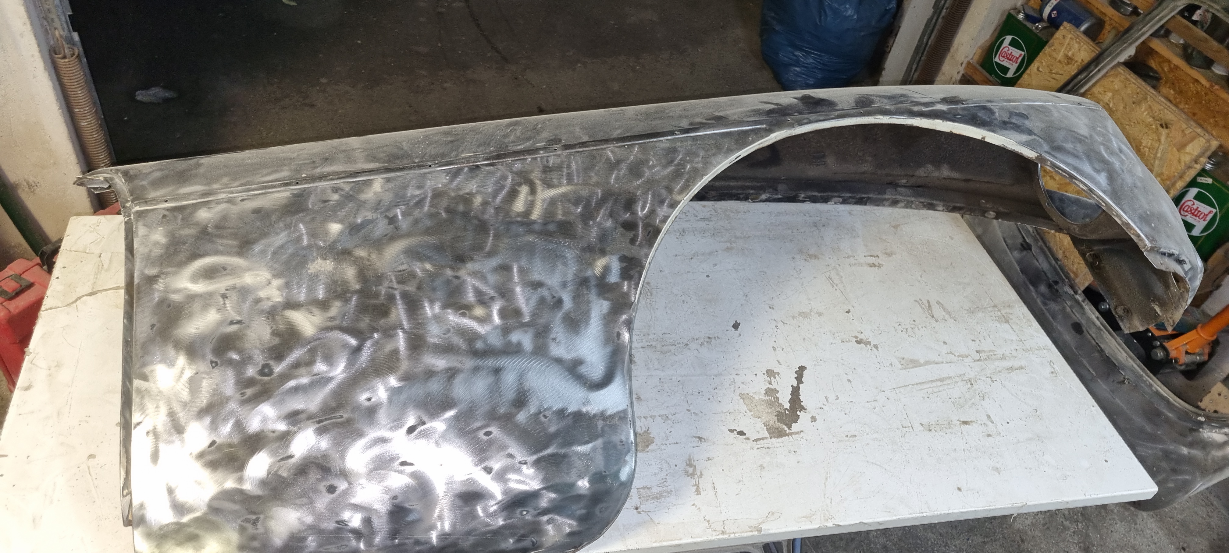 Same applies to the front wings. The right wings look in quite good condition. It just needs a simple small repair on the lower rear edge The left wing has been welded before. I will get a rear lower repair panel for this. Maybe for both sides. (costs ~75GBP per side). The replacement is straight-forward and I can do the prep-work. The doors need new skins – and I already got new skins with the car. It was too late to use the flappy disc on the grinder around the edges tonight. Plan is to strip the entire inner door part and prime it before the new skins come on. Sandblasting might be too harsh for this – I think I am going to contact RTEC for this again…