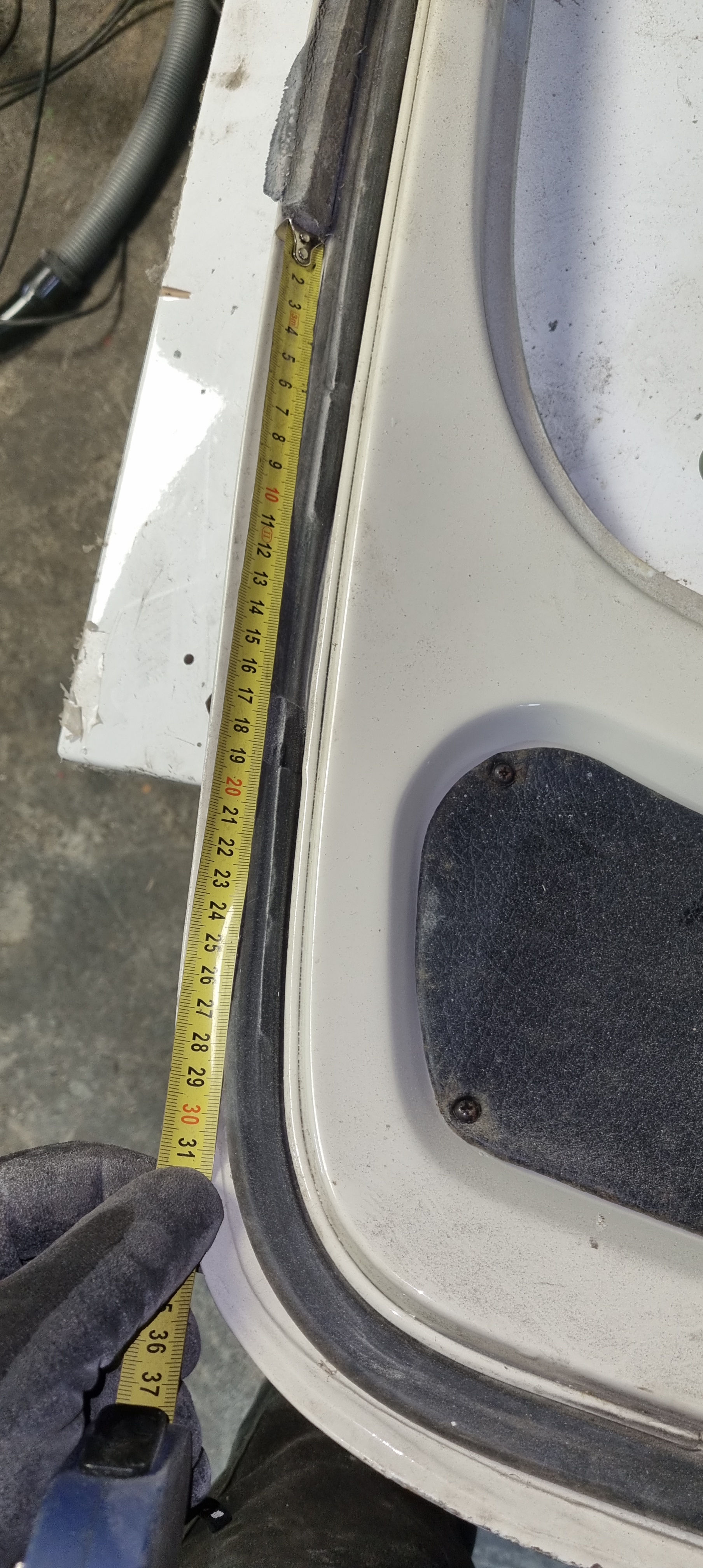 This evening I used the last daylight to clean up the tailgate outside. Before I took the glass out, I inspected it closely and thought that it is quite good. Even after removing the glass and rubber – I had the impression that there is only a small rusty part down in the middle where the rubber ends meet. But the clear strip disc and wire-wheel revealed how difficult it is to really judge the substance of an old car. A few holes along the lower window edge and a fist-sized dent covered up by filler showed up. Later one will be a bit more tricky to repair without taking the tailgate apart. A new heritage tailgate is between 700GBP and 900€ (depending on where you buy it). This small repair will give me a good indication on how much welding will cost. If I get repair for less than half of the price of new tailgate incl 2K proxy primer (my guesstimate) – then I am more than happy with it.