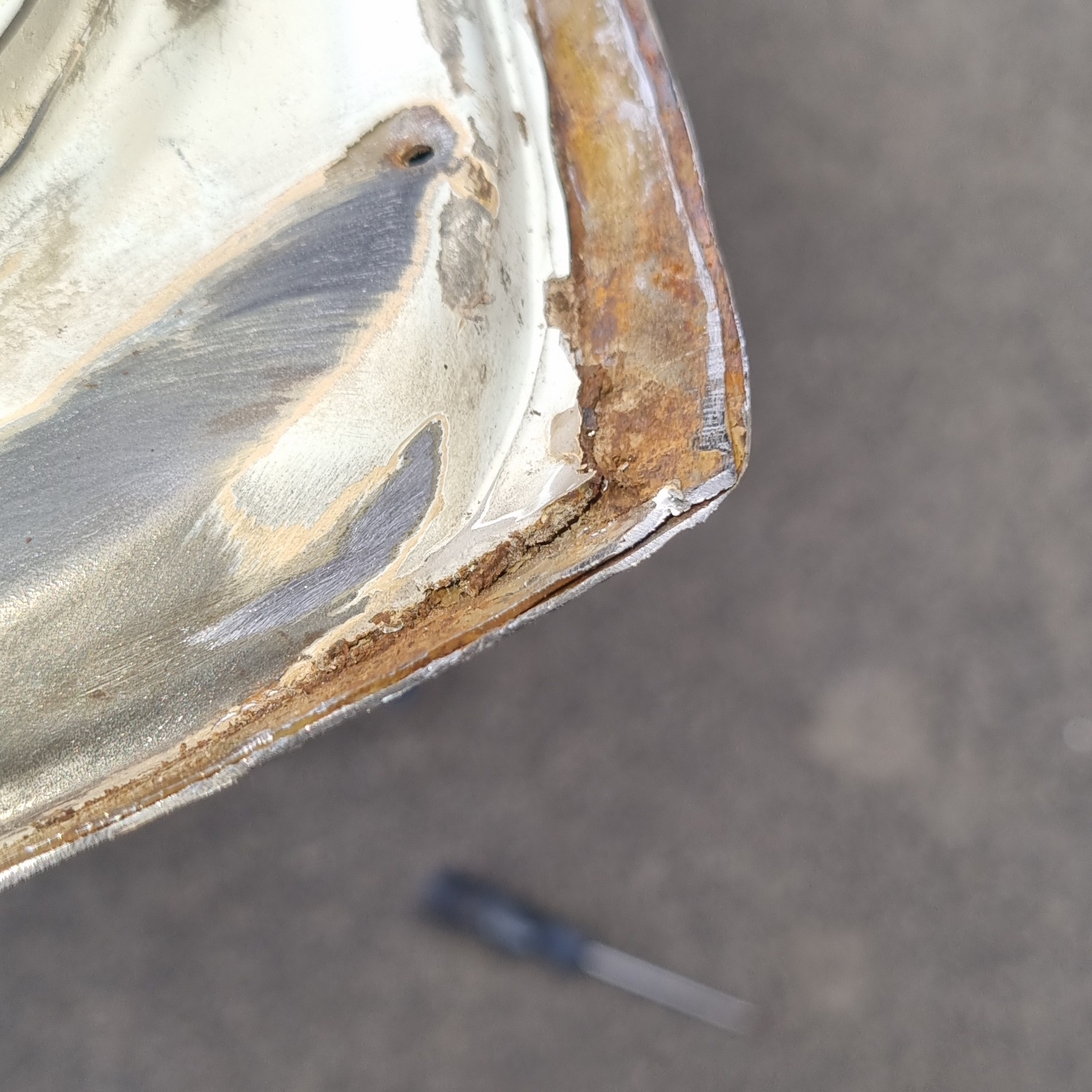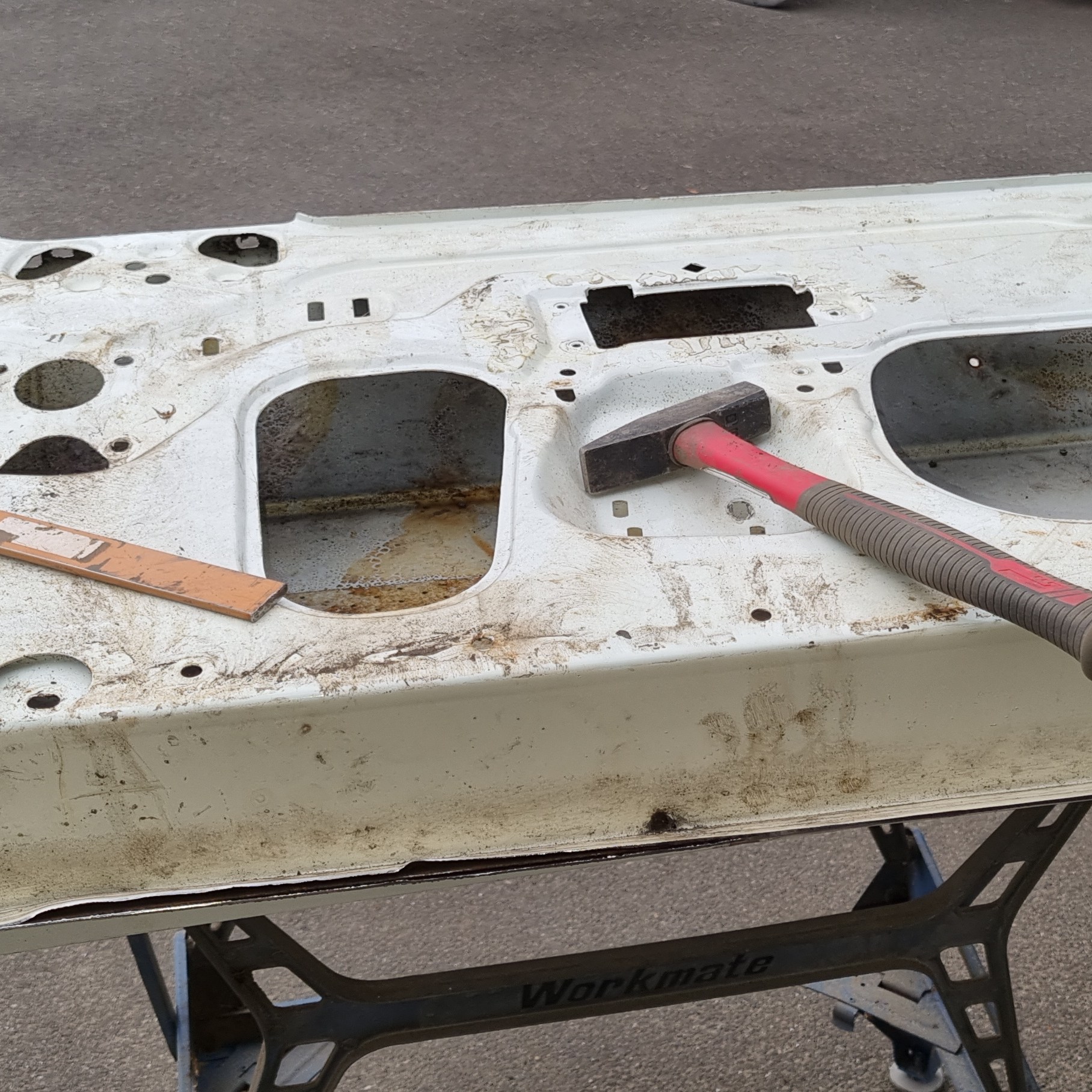Some people advised me to just get another tailgate from Ebay or so. There are a few I found – ranging from 60 to 250€ for used ones. What are the chances that those are rust free? With nothing to lose – I decided to try to separate the skin from my tailgate. If the inner part is any good – I will just order a tailgate replacement skin which costs 200GBP