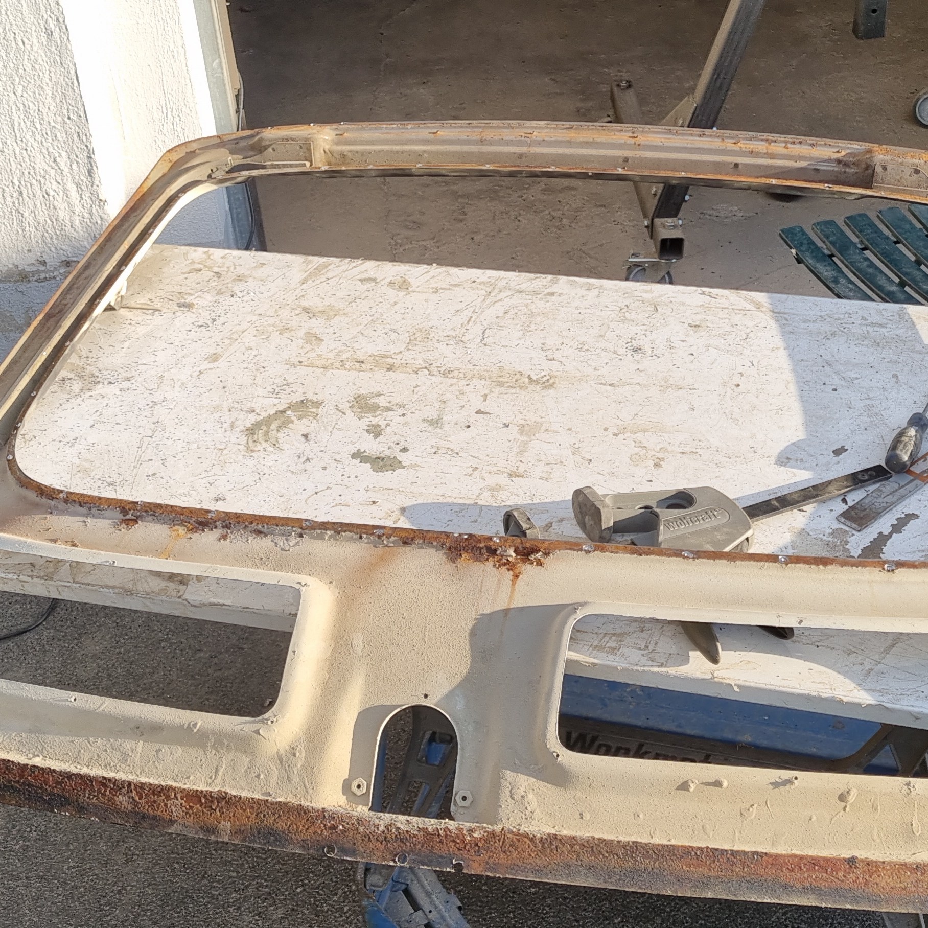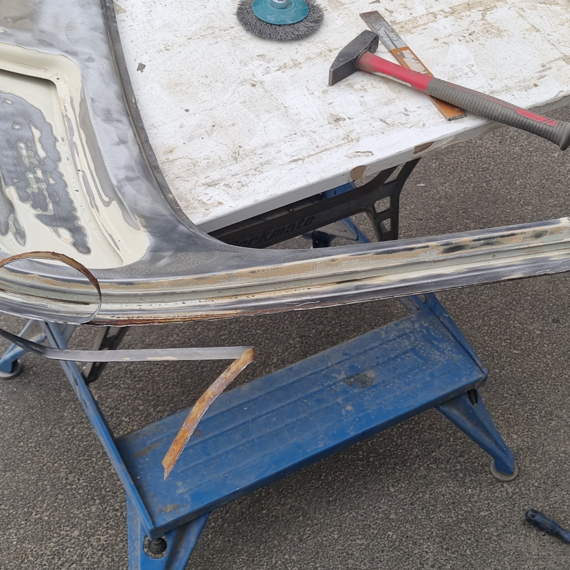 Getting this job done resulted in the most satisfying afternoon of the week. I started at 3pm and was able to remove the skin, clean and prepare the inner part (almost) ready for 2k primer of the tailgate. The skin on both doors are also almost removed – I need a new flappy disc on the grinder to separate the top weld on the doors. The inner tailgate part looks great.