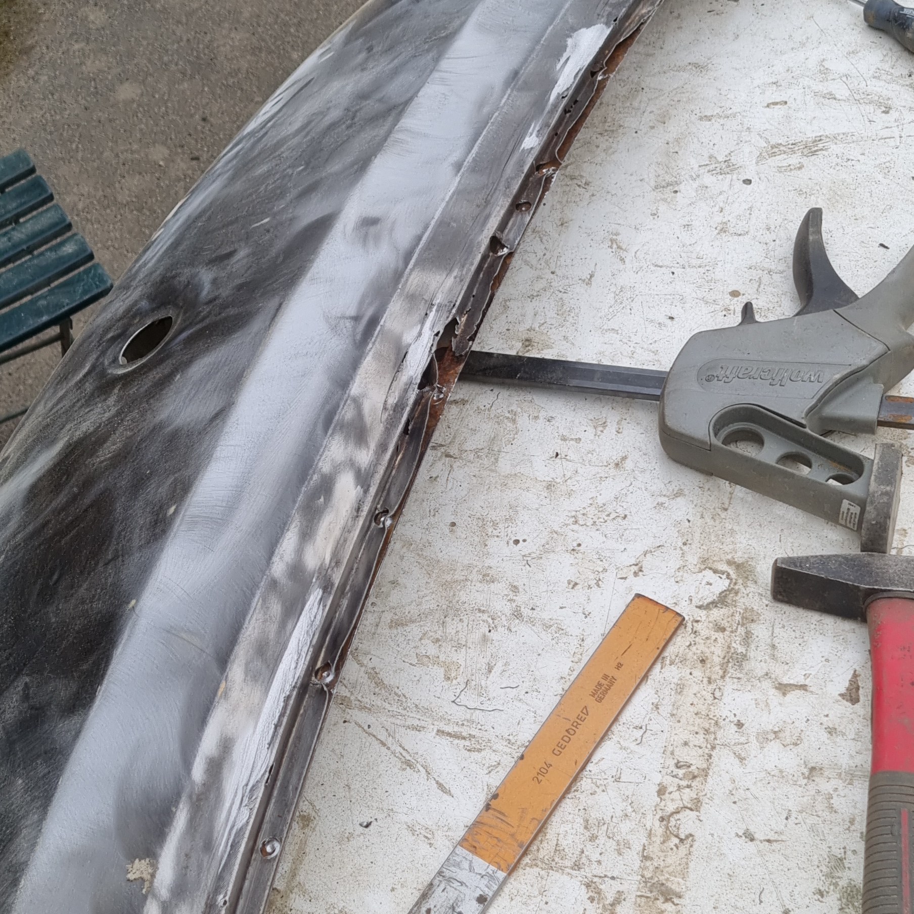 Nowadays, there are many good videos and blogs on how to reskin a MGB or Mini door. I watched a few of them but could not find anything on the MGB GT tailgate. Looking at it – I concluded that it is the same principal – just with a few more spot welds.