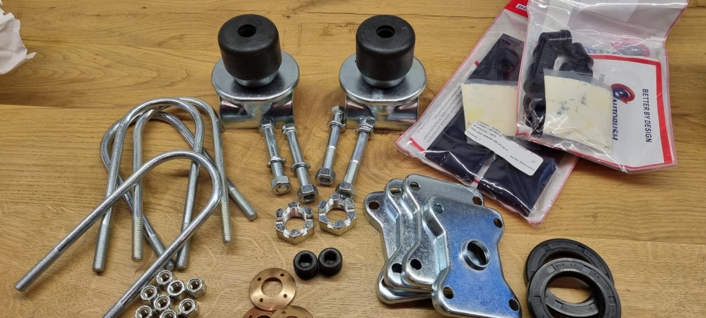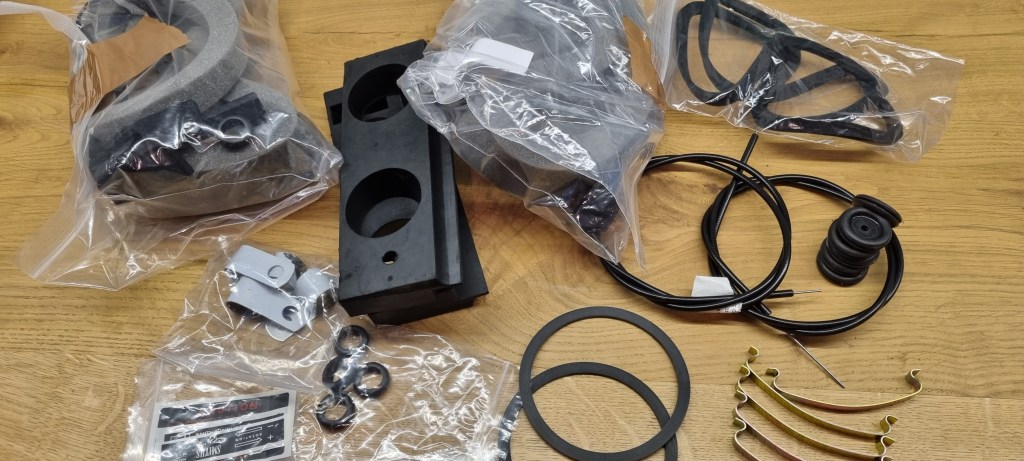 After getting back I used small breaks during my working day to unpack, check and sort the new parts. These split up in five main categories: Hif4 Carb, heater, front quarter-lights, rear axle and panels. The plan is to overhaul the first three categories at home. The rear axle and leaf springs will need to wait for a sunny day once I get the Mini 40 edition completed and out of my garage.