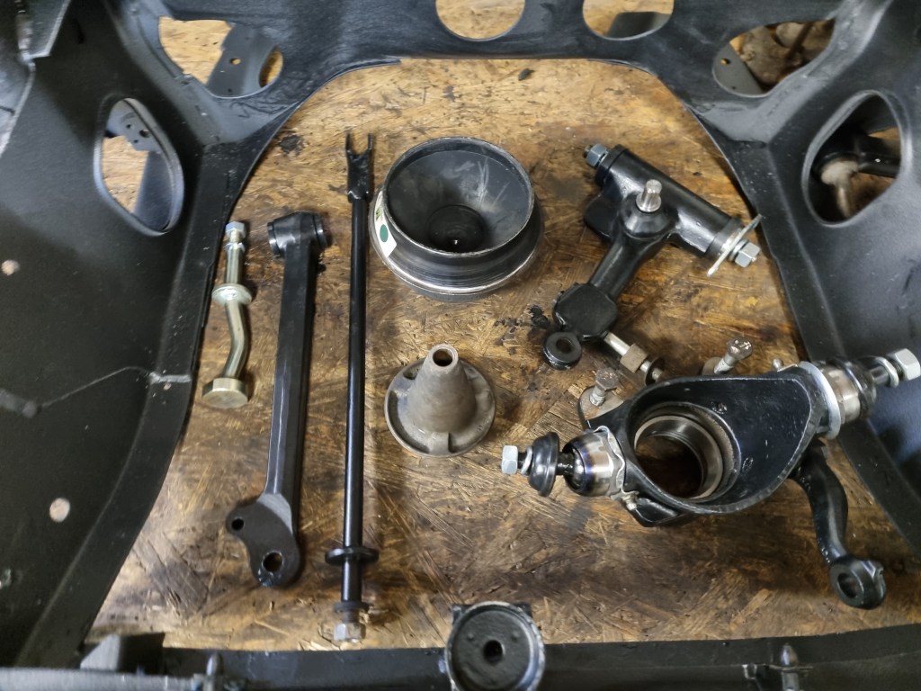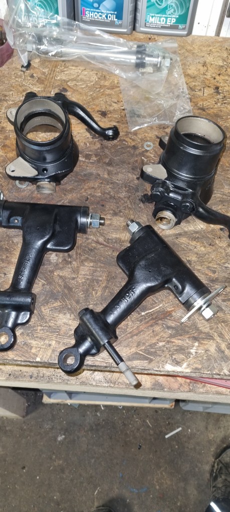 The Mini40 front suspension parts came back from coating weeks ago and I already completed the top arms last year. Now it was time to finally reassemble the front subframe. The only parts that weren’t ready were the swivel hubs. The shipment from Mini Sport is still being held by UPS. It is in customs/in warehouse for 6 weeks now. The tracking shows the import customs has been clear twice and I called them dozens of times. UPS is a nightmare in terms of customer service. Even if you get someone on the phone – most of the time they do not help you at all. If I would get 5€ for every time they told me: “we call you back” – 20% of the 600€ shipment would already be paid.