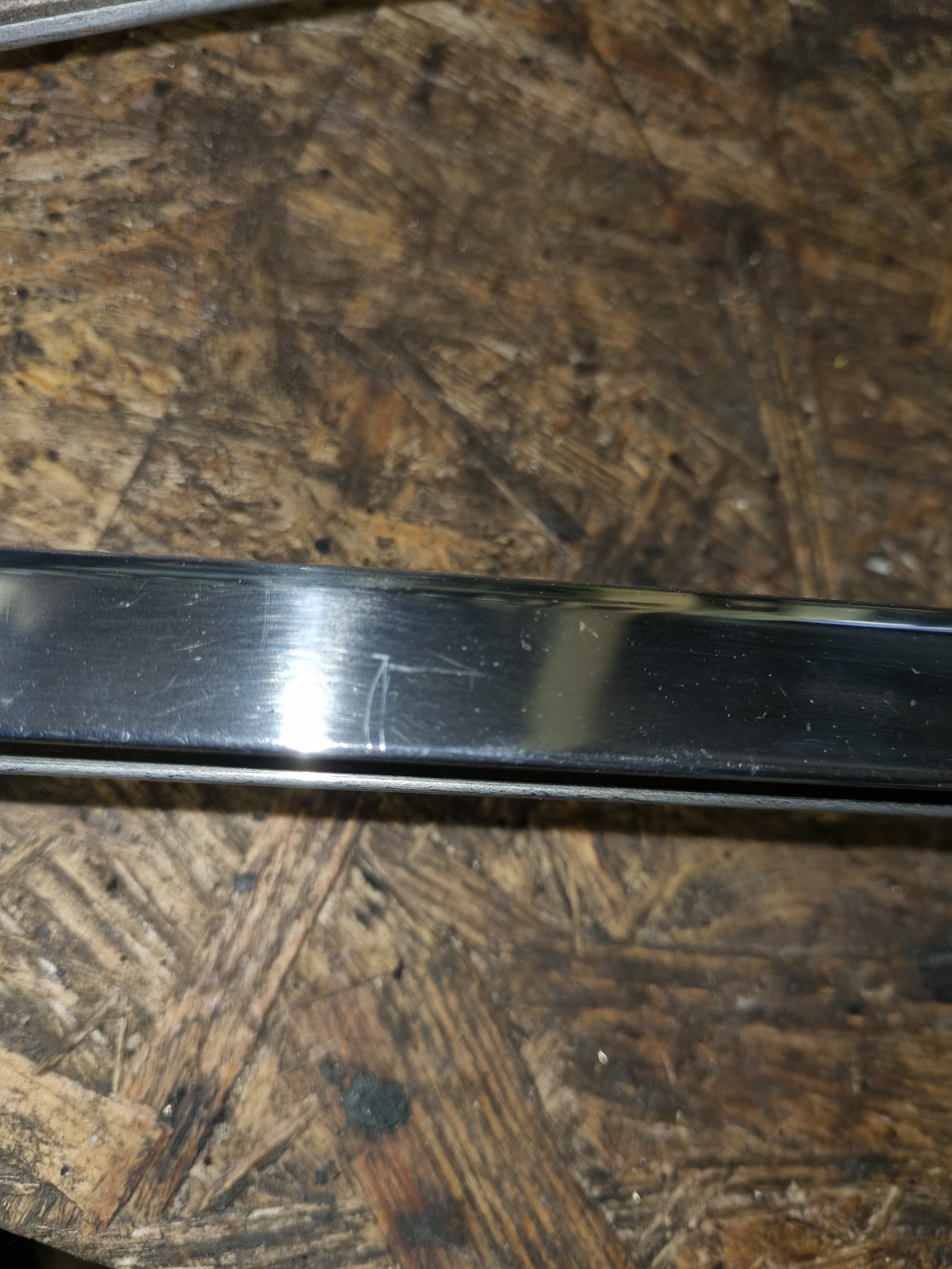 First – if you polish them long enough – the chrome version is shines much brighter, second the chrome version is not magnetic and a bit heavier and third the chrome version window channel looks like a U at the bottom – the stainless-steel version has an additional channel on the other side (see picture)