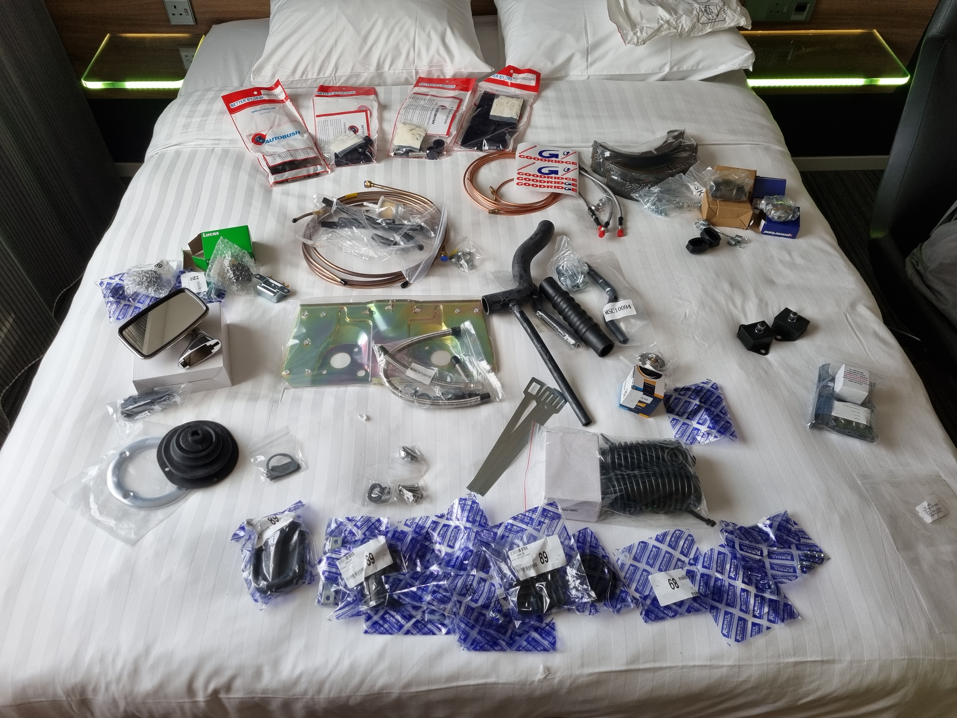 In hindsight we should have ordered HiLo’s for the suspension right away. We wanted to keep the car as original as possible – after all it is a limited-edition model. But having control on the ride-height is preferrable. As I spent a weekend with two of my kids in the UK last week, I bought a HiLo kit at MiniSpares and brought it along with a bunch of other parts I ordered over the last few weeks for the MG. Fitting everything in my suitcase was a challenge. The new brake disks and some other parts had to stay with my son until next month.