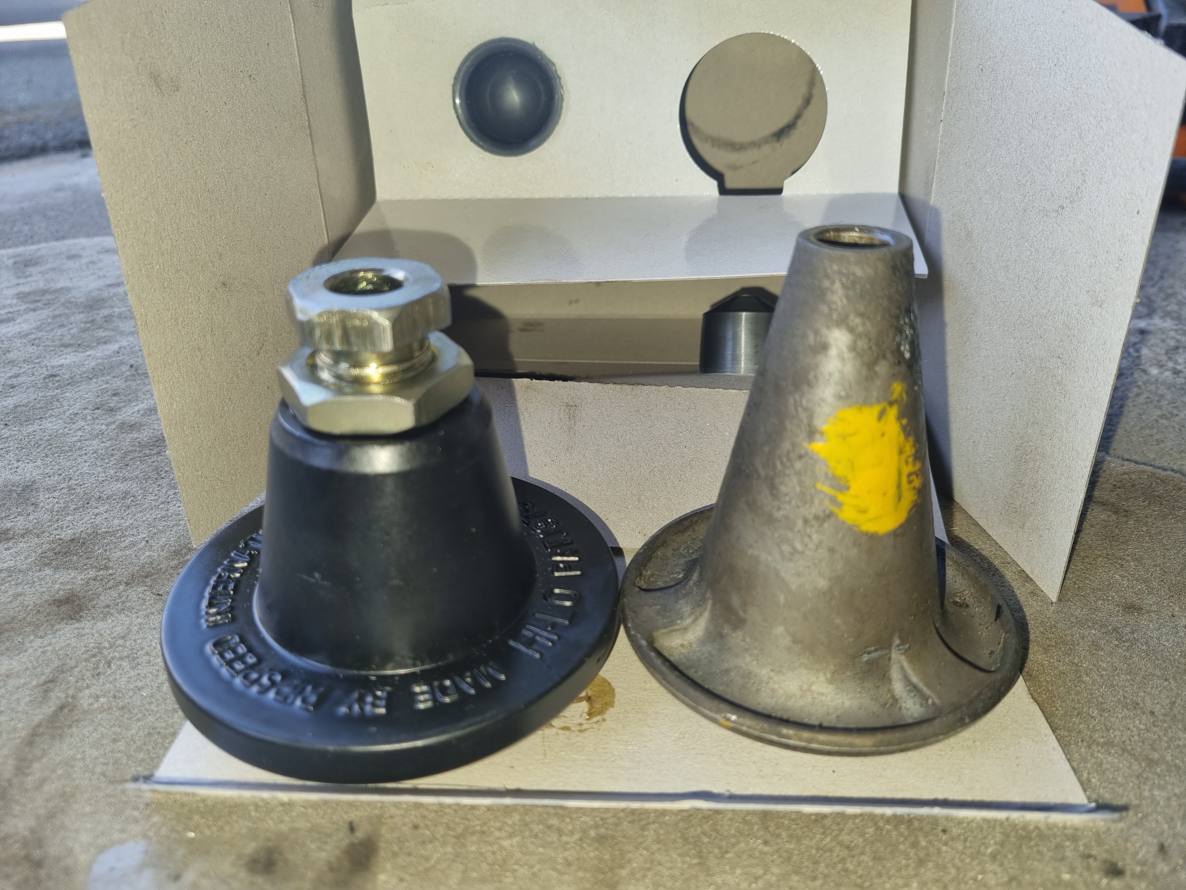The left side however turned into a little nightmare. The main problem in my opinion was the inadequate quality of the rubber cones I got from MiniSpares. Specifically, the fact that the rubber covers the nut in the cone – but also the quality of the nut. Somehow, I ended up killing the thread of the nut and on my compressor. Therefore, the quick afternoon job turned into a much longer – multiday session as a matter of fact.