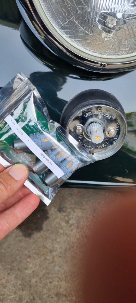 The first task was to switch the indicator bulbs to LED. I bought those for the MGB – but as changing Maggie’s flasher relay turned out to be a bit more work back in March – I had those still laying around. There are two reasons for this switch. For one they are much brighter. But they also draw significantly less power – which is a good thing. I also knew that the flasher relay socket is easily accessible and that this will be a plug & play exchange. While changing the bulbs I noticed that the contacts in the Lucas L691 base plates are corroded – I cleaned them up a little but will replace them at some point.
