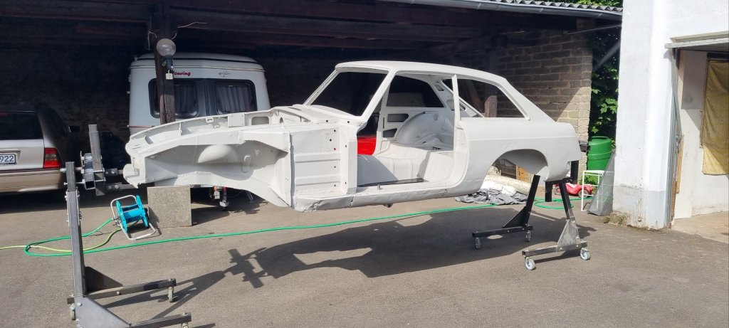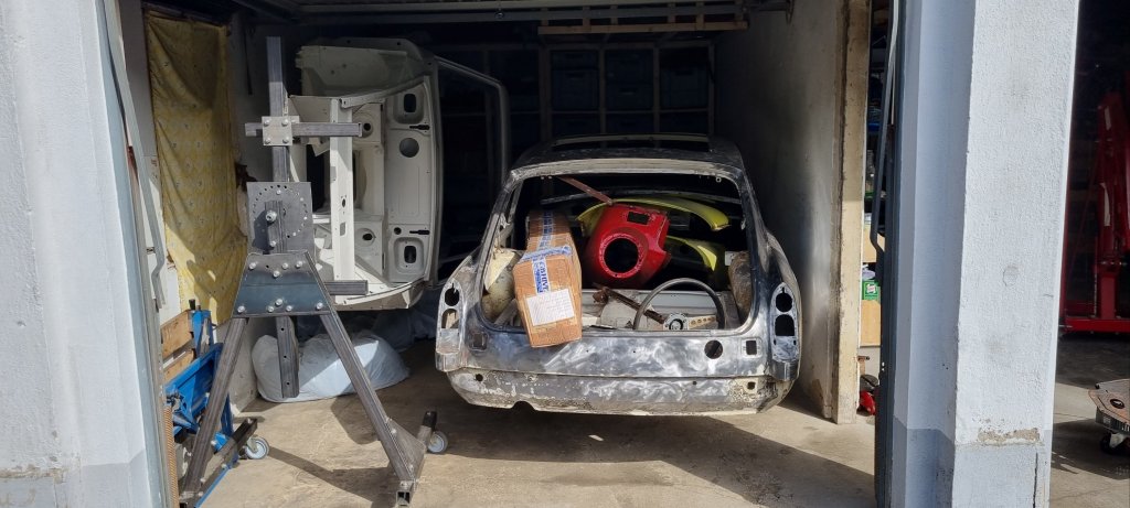 Getting everything out of the garage, cleaning everything and mounting the shell to the roll-over jig took a long time. Tomorrow I will have a few hours to work on the Morgan as well.