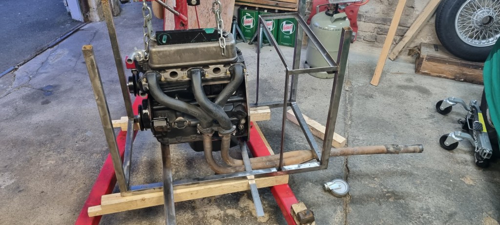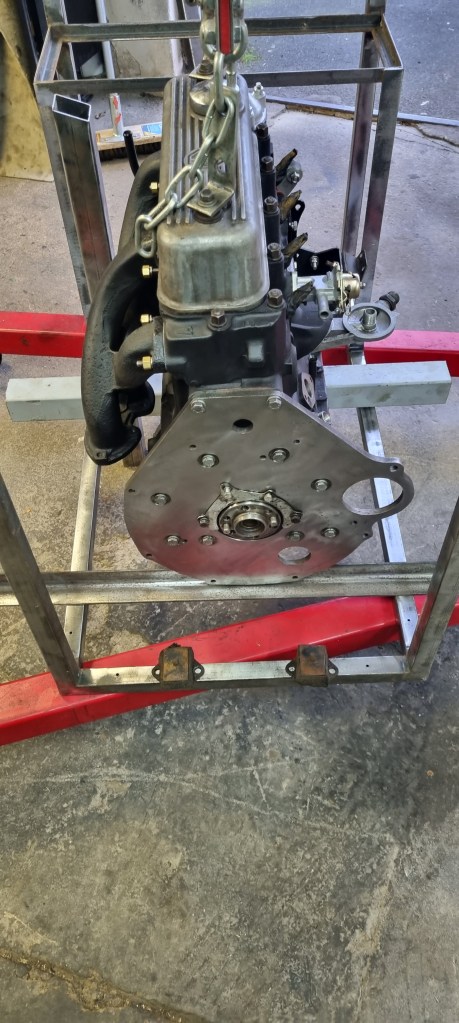 Well, it might become all of this. After removing at the rust off the frame, I hoisted up the 18V engine and started to measure. An important step in this very “scientific process” is too sleep a night over it 🙂