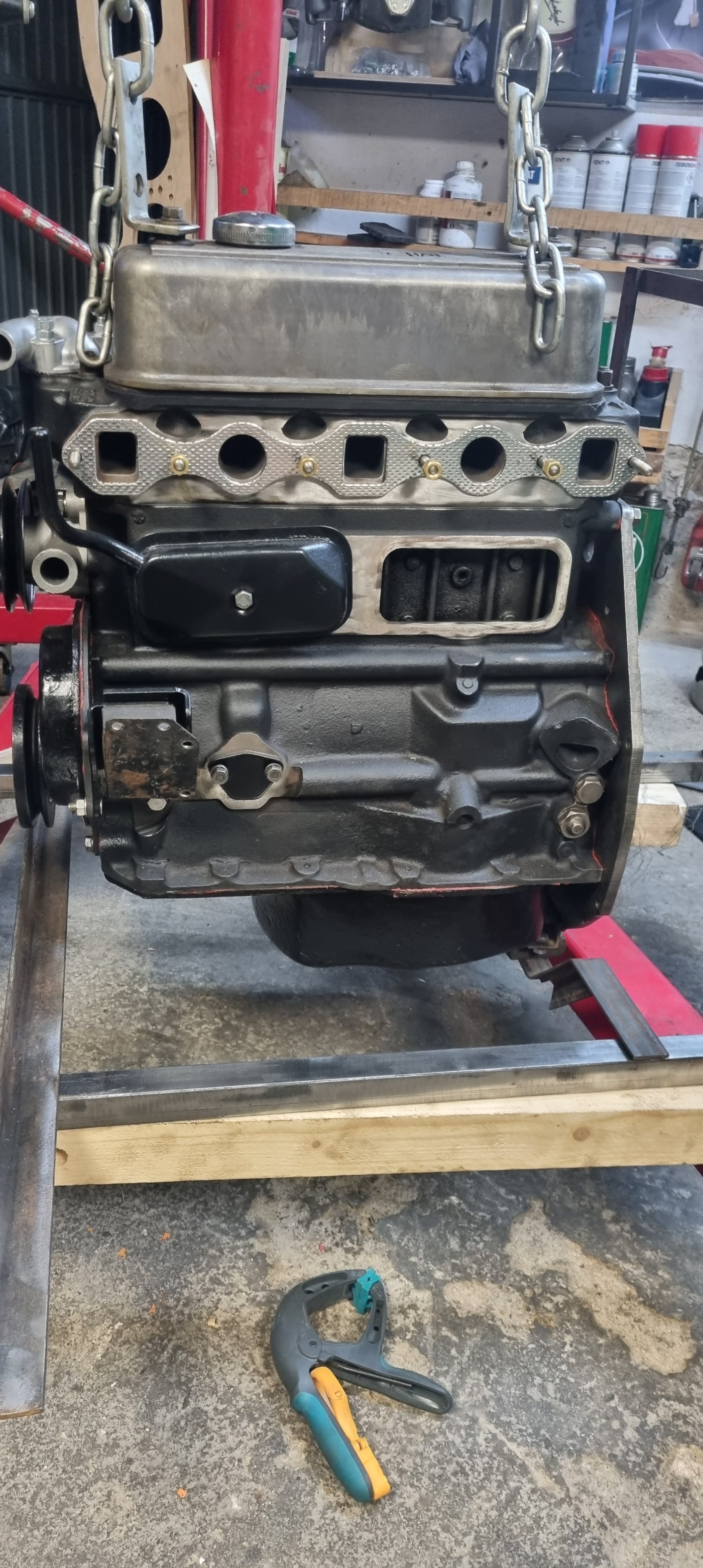 Sometimes it is hard to explain why a certain task, project or idea suddenly becomes more important than others. If I take a step back and try to think objectively about which of my open tasks might have higher priority – there are a number of things that come to my mind. But the truth is: I just want to build the engine stand/workshop trolley). I did start my afternoon however with painting the MGB steering parts.