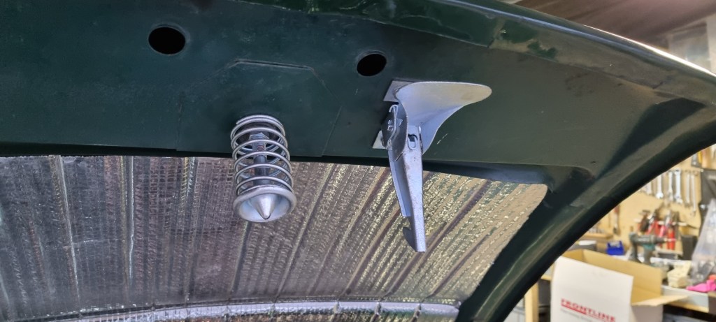 Last prep task I did was to change out the bonnet catch. This is the first time I took from freshly galvanized parts for project Mildred and stuck them on Maggie.