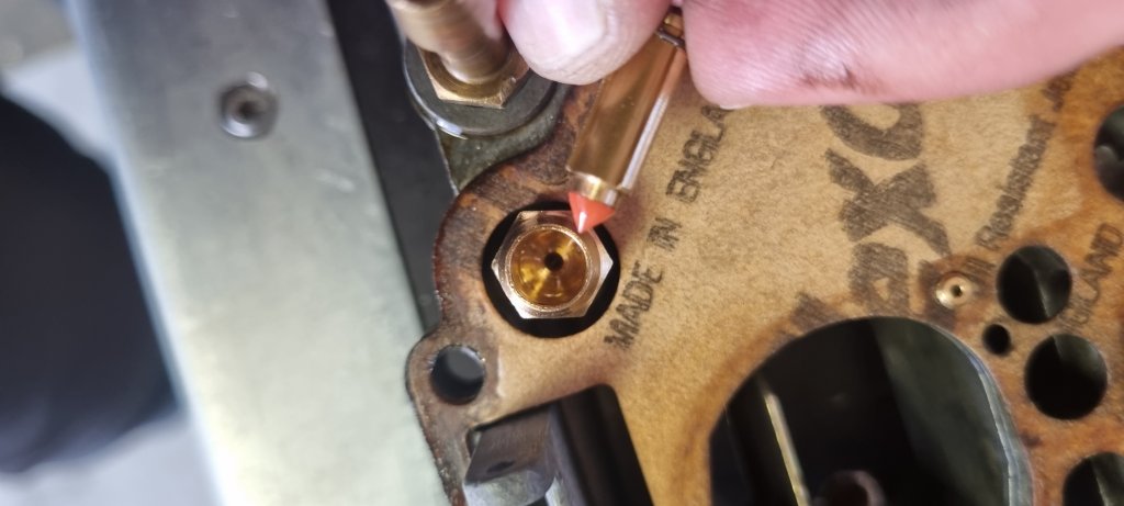 Today after work I decided to checked the entire fuel system again. The Facet Fuel filter was immaculate. The Filter King filter and pressure regulator looked also clean. The Weber 32/34 DFT wants a fuel pressure from the pump in the range of 2.5 to 3.5 psi. It was a bit too high the Morgan – I tuned it down to 3.5 psi. I checked the float and float valve – all clean and working. A quick call with Stephan from the bodyshop – he also confirmed that fuel systems is the right place to search of the root cause.