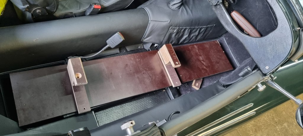 Wheel alignment was also not too difficult with the Gunson Trakride. After driving across the plate – the results where clear that I had too much toe in. Two adjustments later it looked much better. The test drive that followede was accompanied by my wife and worked out well. I also added a small and hidden bracket in the glove box for the mobile phone holder and charger – I will be needing this in the UK I guess.