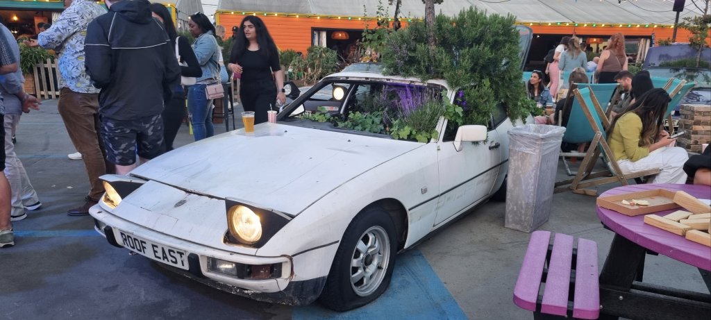 We had a fun evening with my son friends on a cool roof-top bar in Stratford – what will happen to many of our cars was displayed there as well🤔
