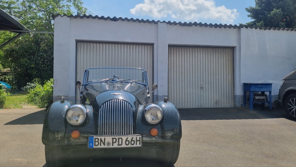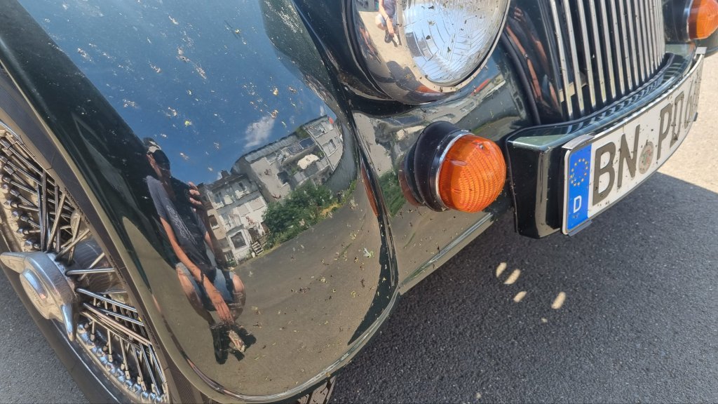 But most important was an immediate cleaning of the Morgan. Somewhere in Belgium I drove through an unusual large inspect swarm. The front of the car was so clogged that I had to stop twice the night to clean at least the windscreen. Out of experience I know – the sooner you try to get this off – the easier it will be. Getting everything back into nice condition took me four hours. After this my wife and I did a short round to a Biergarten a bit outside of Bonn to enjoy the rest of the evening.