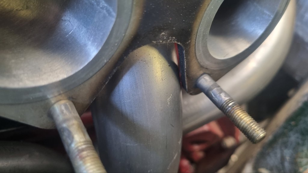 An issue that I always had with the Tourist Trophy (TT) exhaust system on Maggie was that every few months the manifold gasket burned through. This became worse after a hole close to the bracket that connects all downpipes had to be welded. All manifold downpipes are welded together at the bottom, it is a single piece manifold – unlike LCBs that connect into a Y-hose. The problem occurs because the mounting surfaces of the three exhaust pipes are not aligned properly.