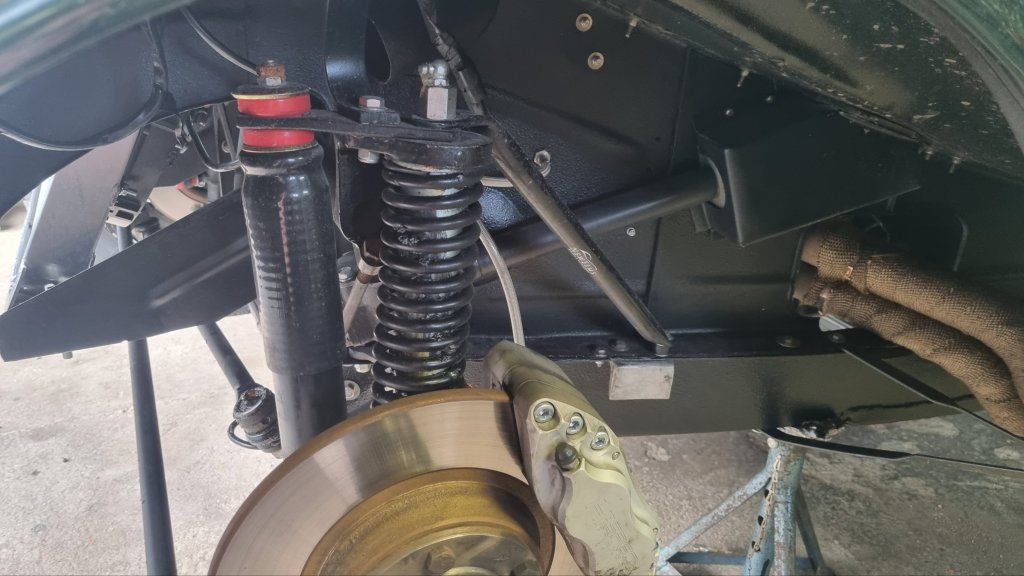 The AVO shocks are adjustable. There are 16 adjustment steps between soft and hard and so far I had them on the softer side – with 5 clicks on the adjuster from the softest setting. I increased to 10 clicks now. When double checking all bolts and nuts again I found that the crossbar on the front crossmember needed to be tighten significantly.