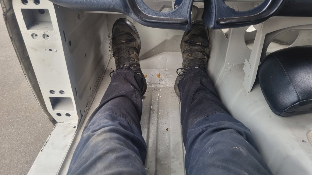 A while ago I also bought two old Mazda MX5 seats. The bare GT shell has slowly turned into storage space as well over time. As the seats were in the way – it made sense to also store them inside the shell. This was an opportunity to test how they would fit. What I already knew is that it is important to flip the sides of the seats. This way the reclining mechanism sits close to the gearbox tunnel – allowing the seats to go much further back. I will create some brackets, allowing to use captive nuts in the floor and place the runners for the MX5 seats further back. The goal is to allow seat adjustment for people between ~5.5ft (170cm) and ~6.4ft (195cm).