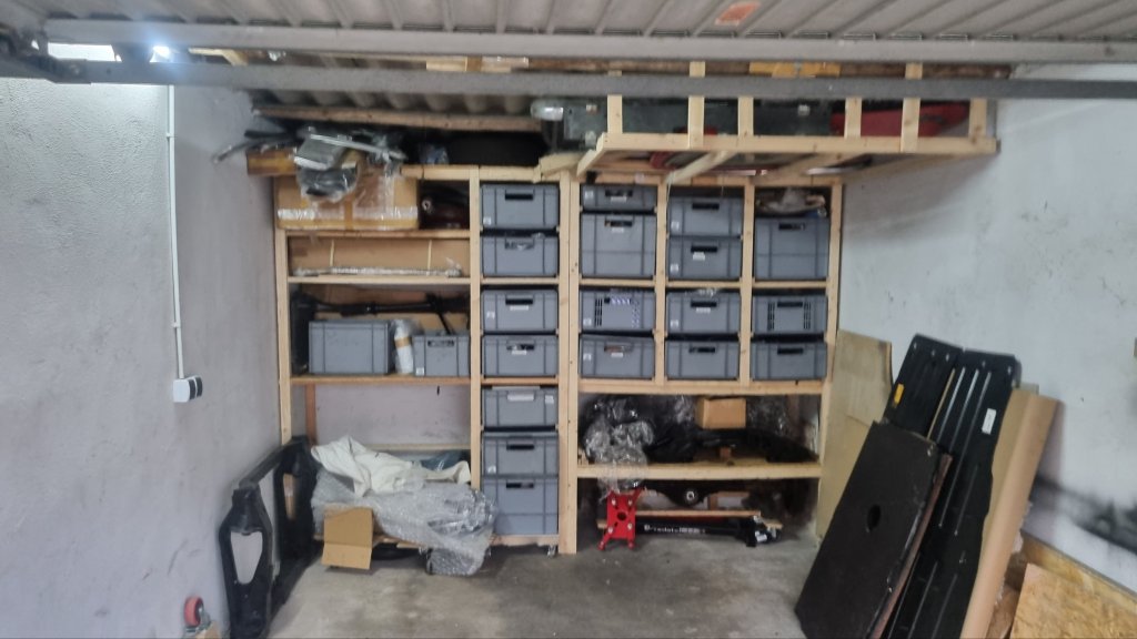 As it was clear that I won’t be able to finish the axle today – I decided to already get all parts together needed to finish including the brakes. At this point I realised that it is about time to clean the left “MGB” garage. It is just over 14 months ago that I started building the shelf on the back wall. Even though I started with a good system – over time some parts got “Lost” – they ended up in the wrong box due to space constraints. It might not look like it – but most items for almost two entire MGBs have found their way into storage by now.